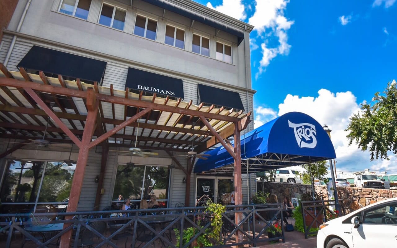 Built in 1985, Pavilion in the Park is an enclosed upscale shopping center on Cantrell Road, notable for its many locally-owned and operated businesses. Several tenants carry a long legacy in the city, such as Bauman's Men's Store, which opened downtown in 1919, and Trio's Restaurant, which has menu influences from the former Sam Peck Hotel, another historic downtown fixture.