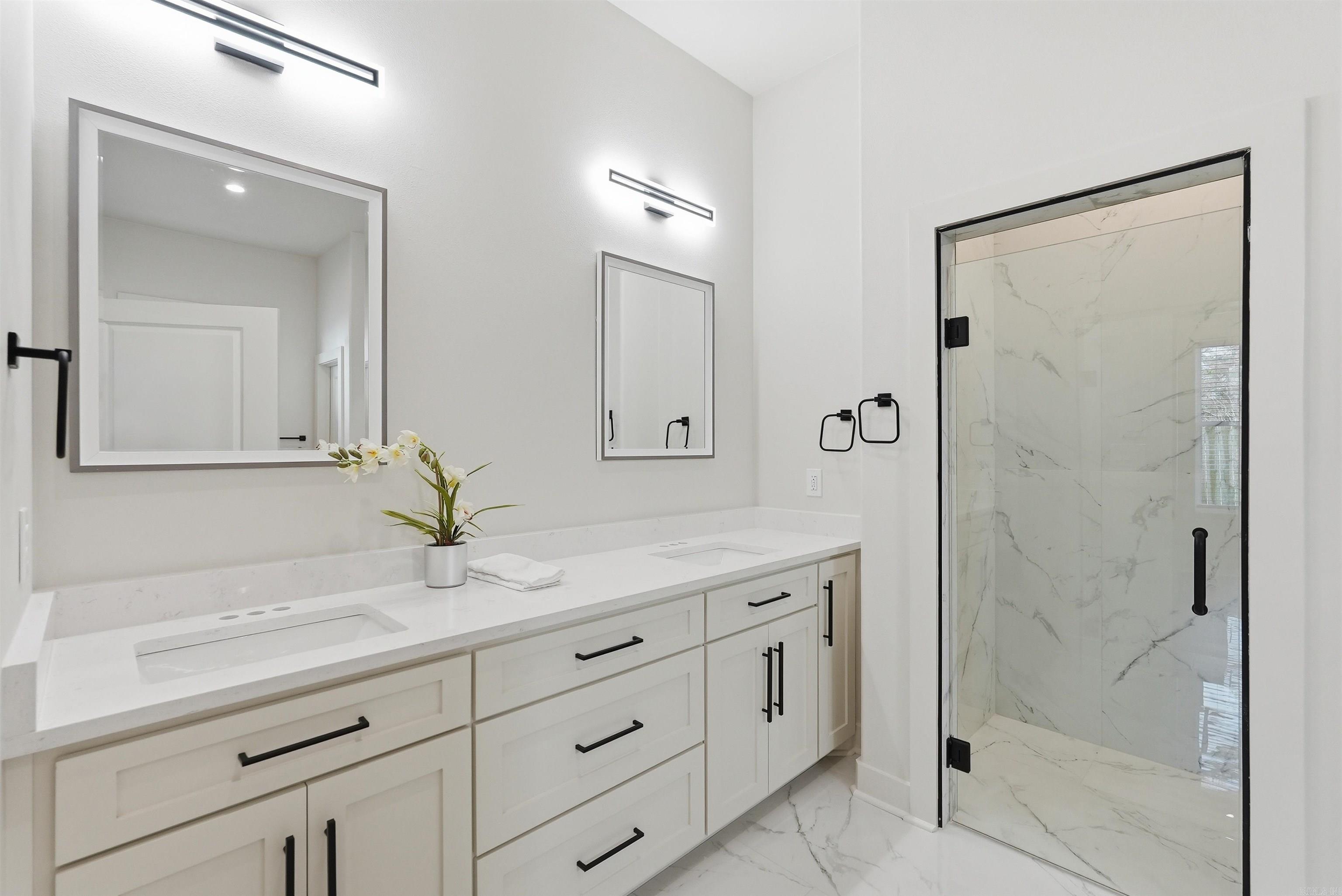This beautiful new construction home built by Icon Homes blends timeless European-inspired design with modern comfort and efficiency. Situated on an oversized lot, the one-story residence offers striking curb appeal with its classic brick exterior, energy-efficient Low-E vinyl windows, and a bold black insulated garage door that adds a modern touch to the home’s exterior.