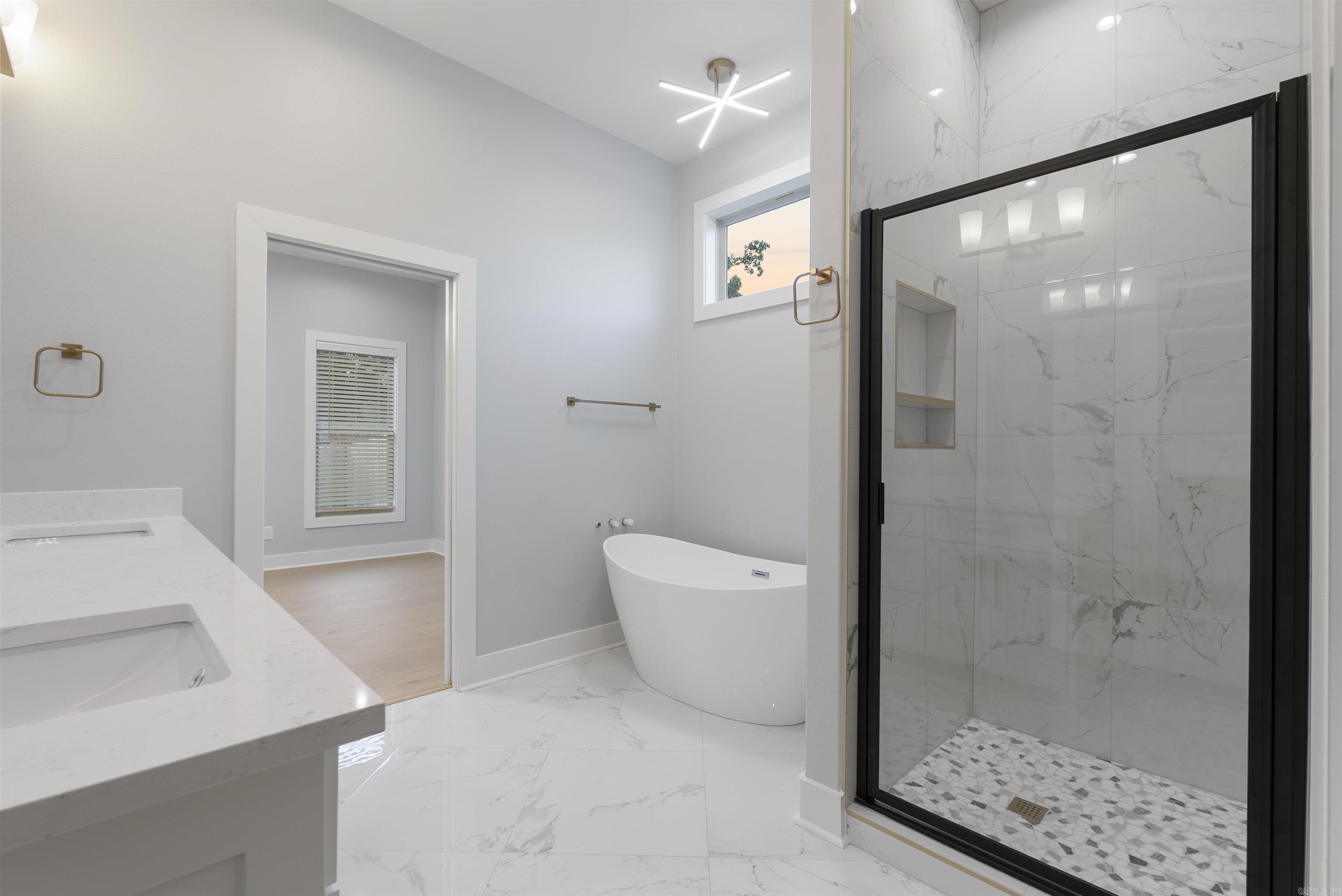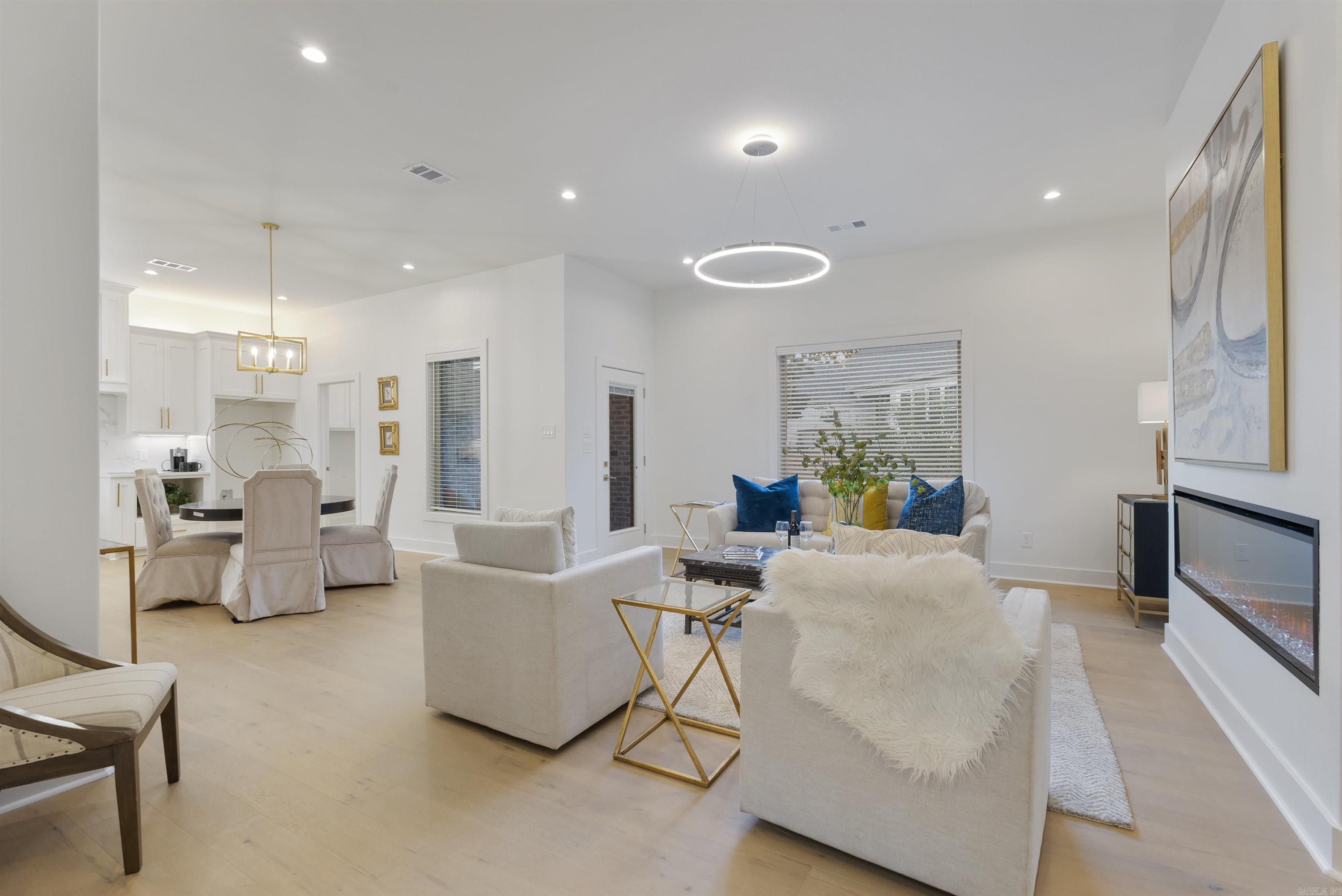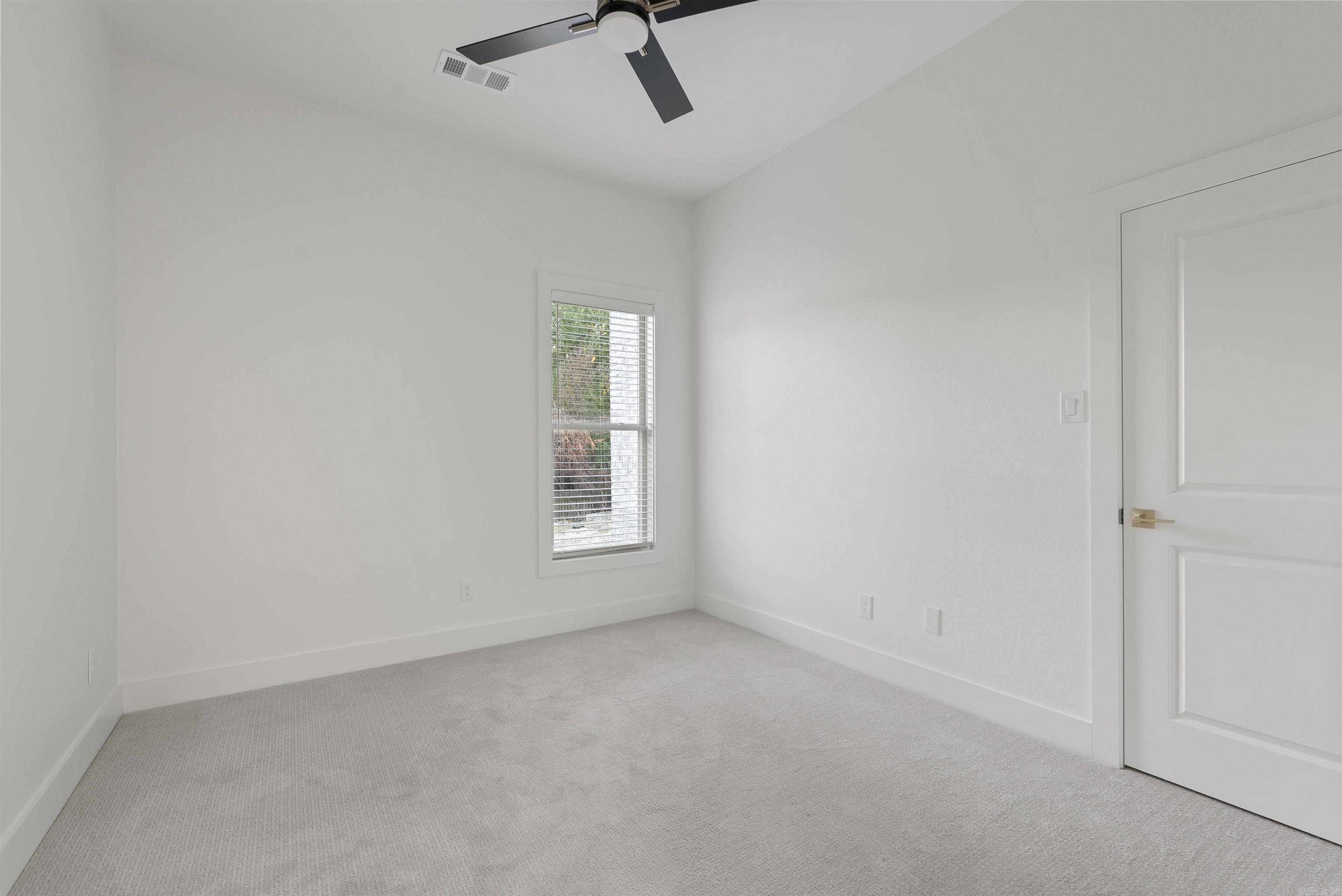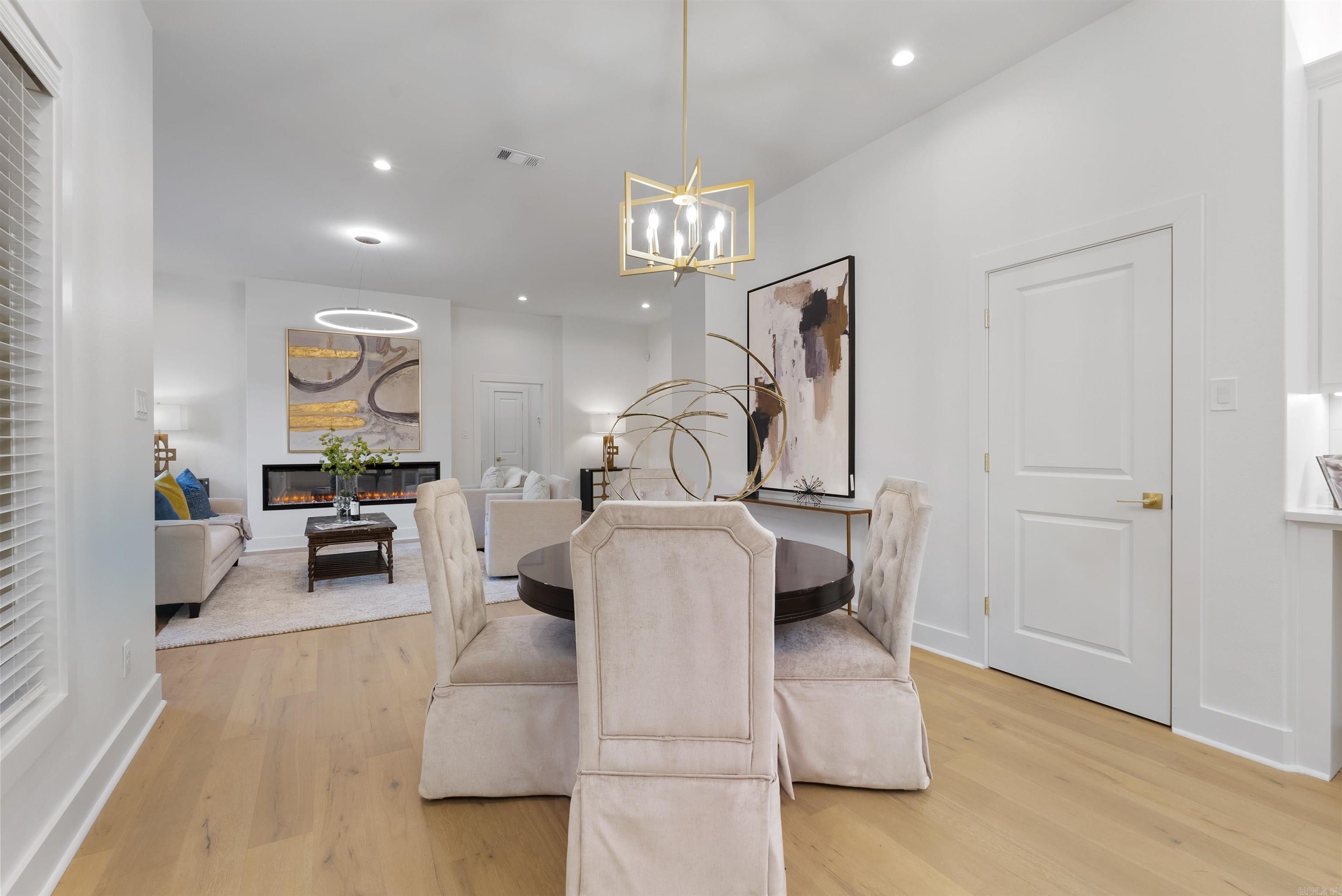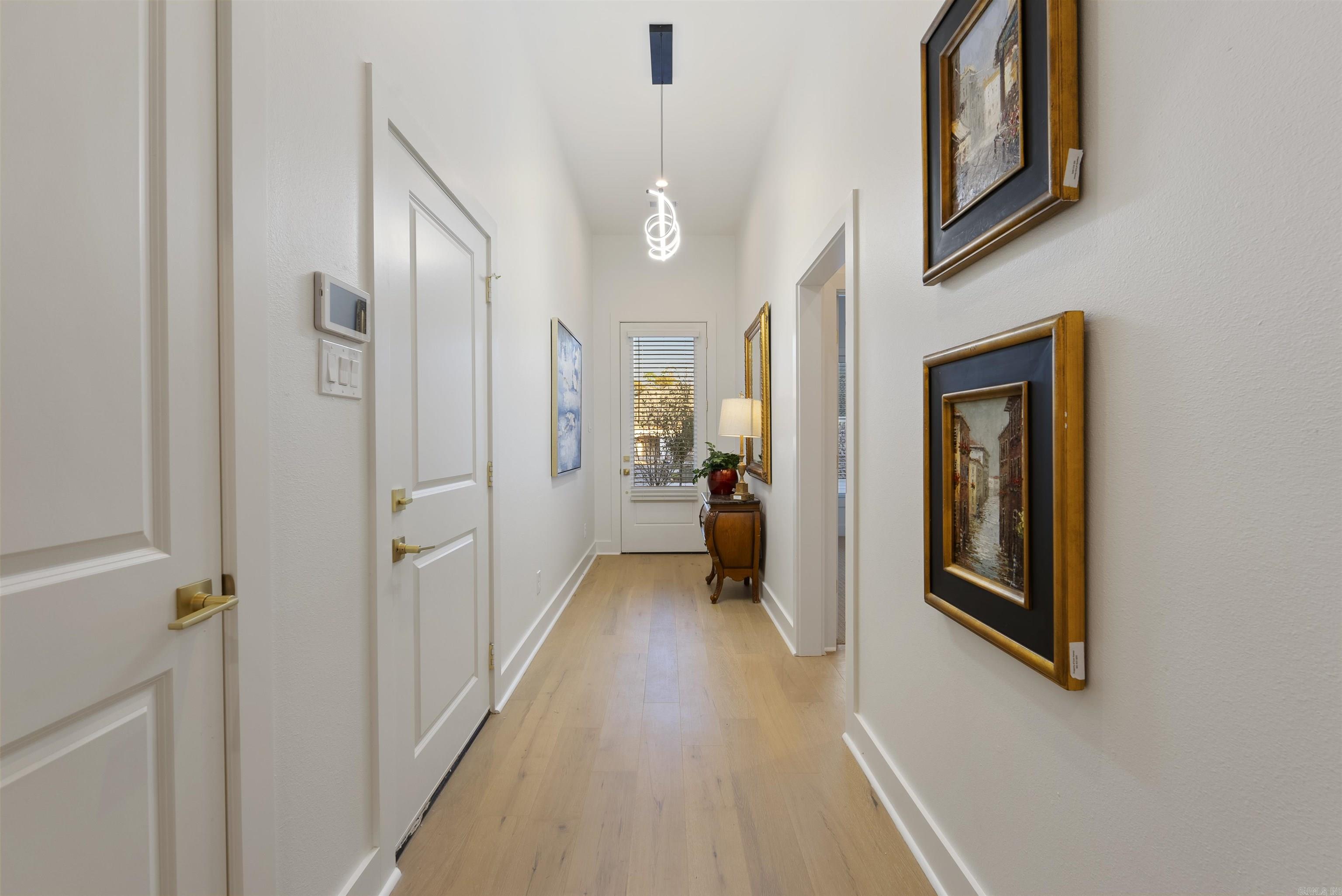Step inside to discover white wide plank oak hardwood flooring, soaring ceilings, and expansive windows that flood the home with natural light. The open layout creates an airy and inviting atmosphere, perfect for both relaxing and entertaining. Just off the entry are two guest bedrooms with a shared hall bathroom. The spacious great room features a color-controlled LED fireplace and opens seamlessly into the chef’s kitchen, complete with GE Profile appliances including a gas range, Energy Star dishwasher, vent hood (to be installed), and microwave. A designated dining area flows easily into the private courtyard and fenced backyard, ideal for outdoor gatherings and grilling. The laundry room, located just off the kitchen, offers additional storage space for everyday functionality. The privately situated primary suite is a true retreat, featuring hardwood floors, a spa-like bathroom, and a walk-in closet. The en-suite bath includes dual sinks, a freestanding soaking tub, a walk-in shower, and a private water closet.