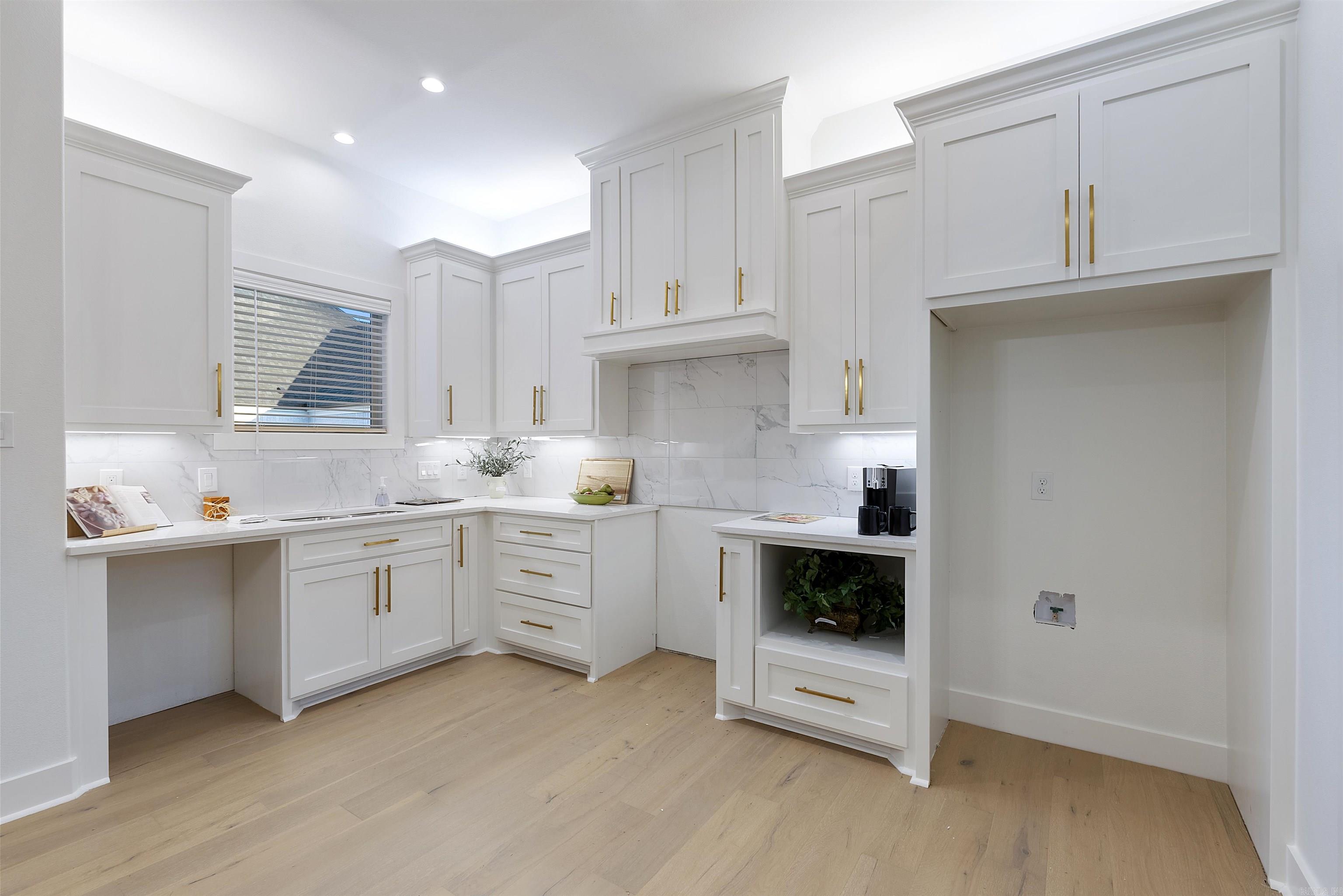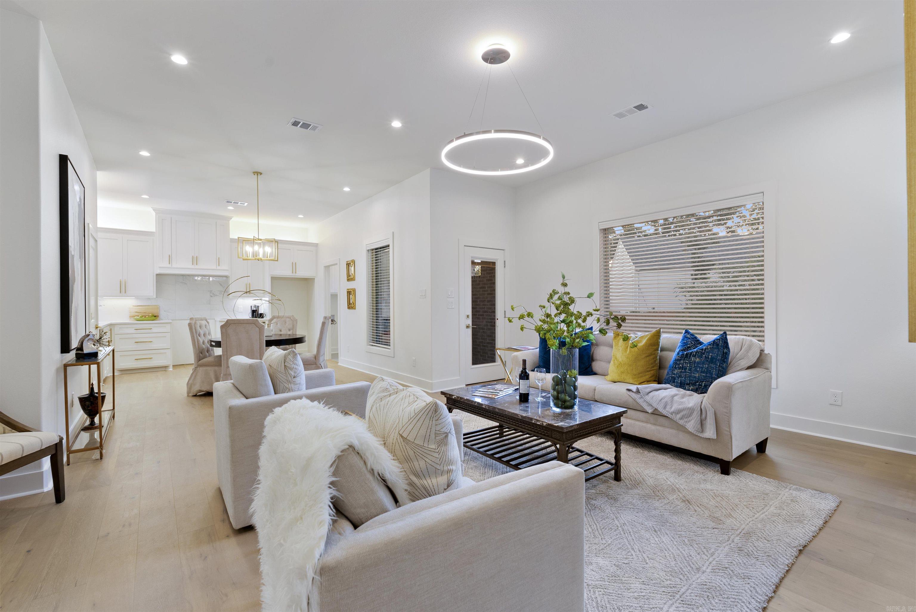 Additional features include professional landscaping, landscape lighting, a wooden privacy fence, sprinkler system, designer light fixtures, recessed lighting throughout, custom window treatments, and designer mirrors (to be installed above all bathroom sinks). A soft-close garage door opener adds the final touch of luxury.
