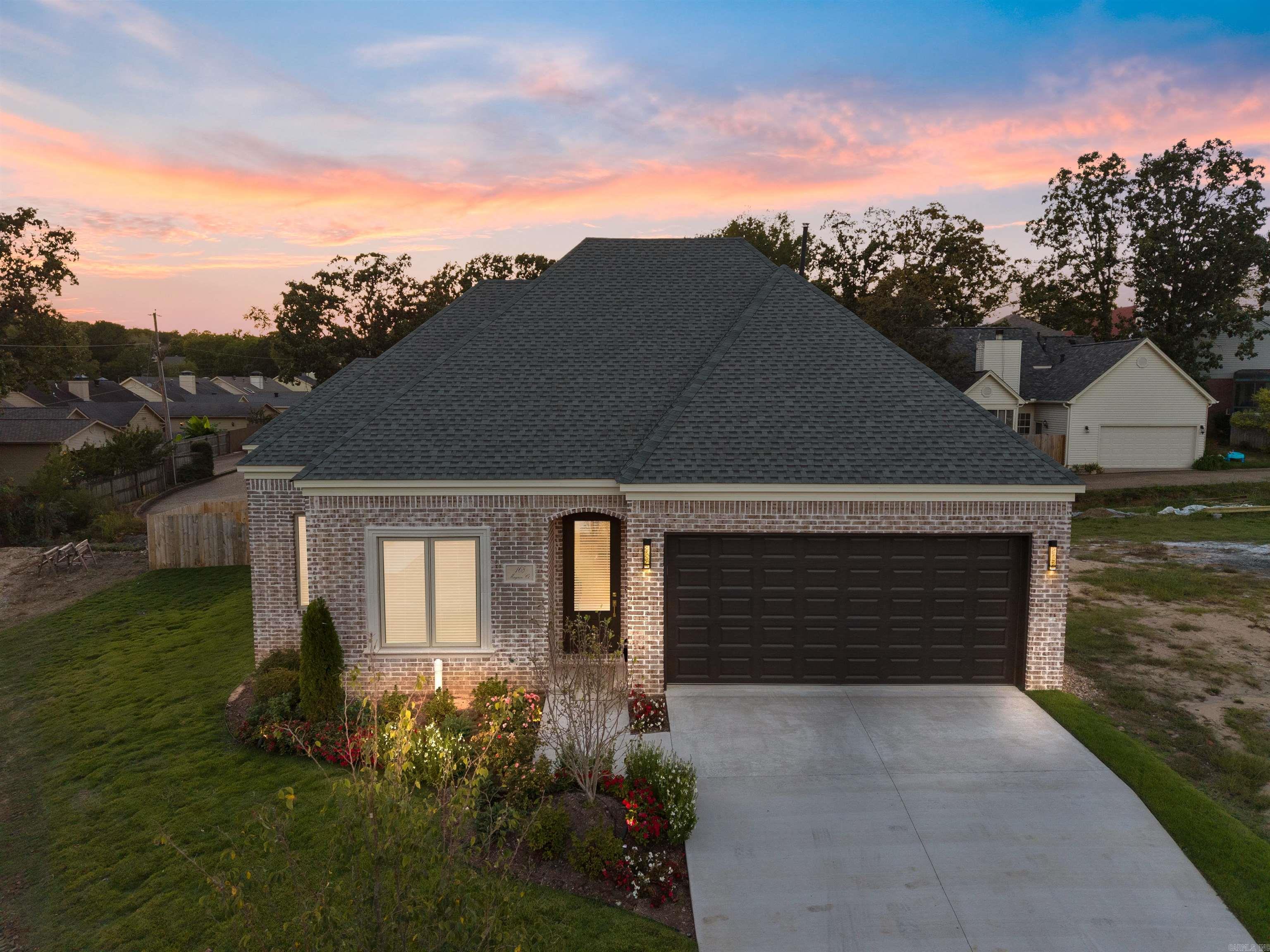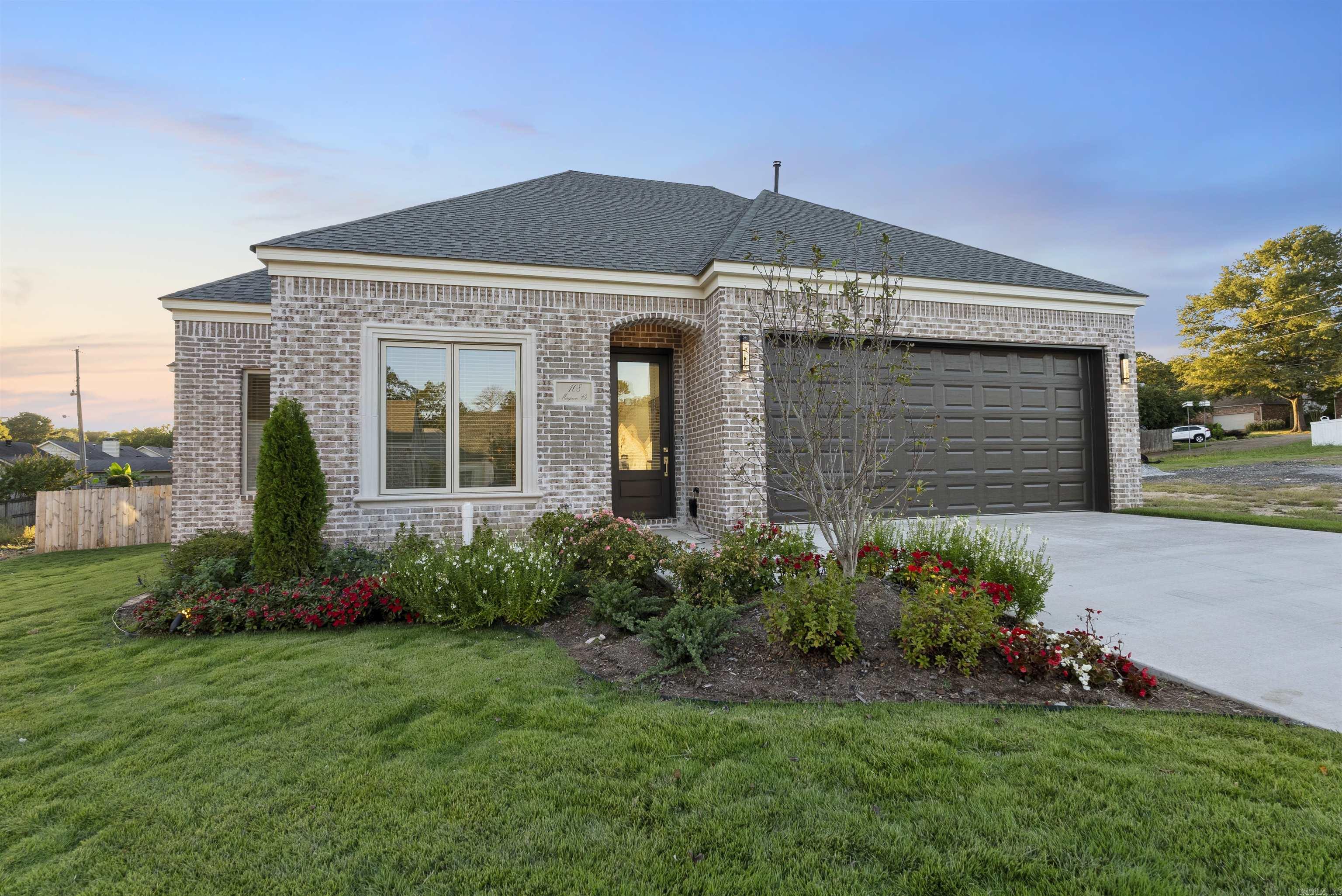 This stunning new construction home by Icon Homes blends timeless European-inspired architecture with modern, state-of-the-art construction. Designed with care and attention to detail, this one-story home offers elegant curb appeal with a classic brick exterior, energy efficient windows, and a striking black garage door – all nestled in a serene, private setting.