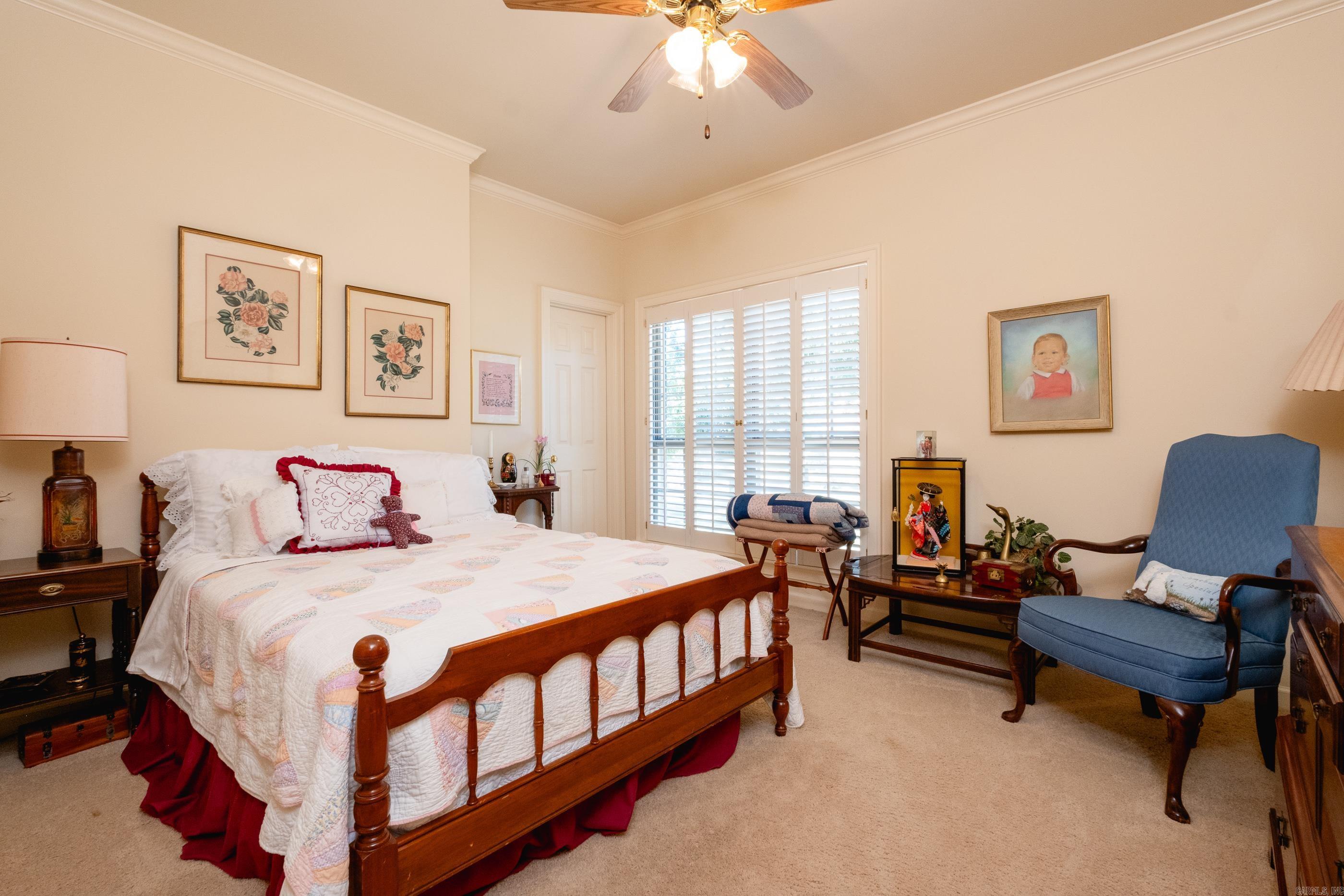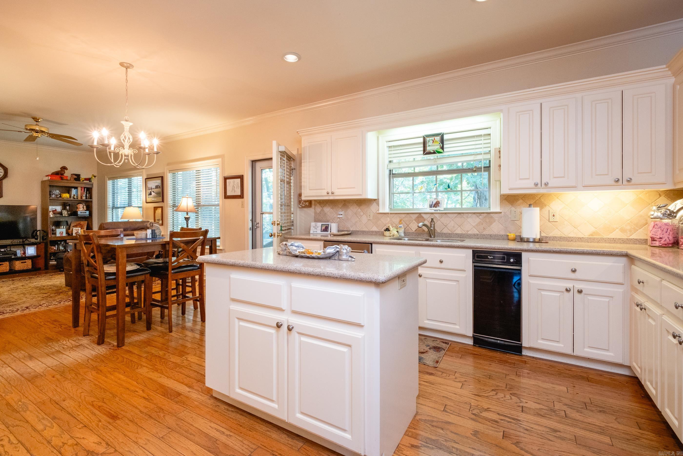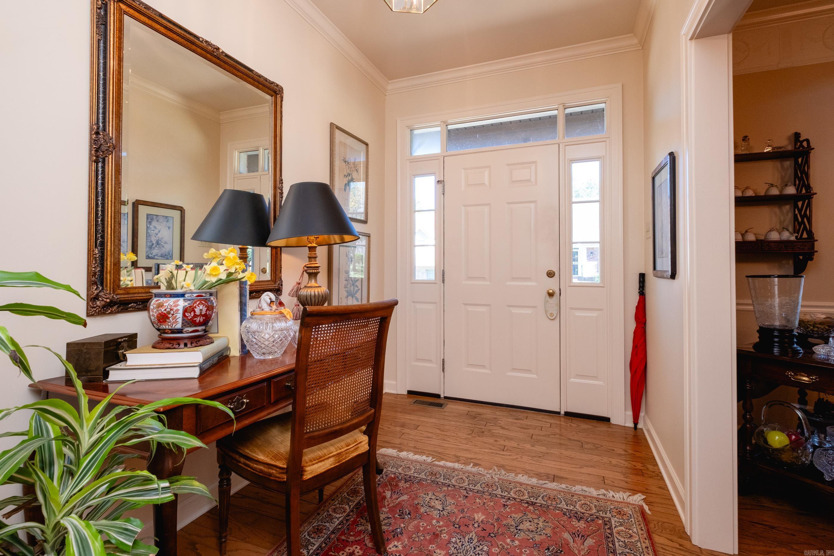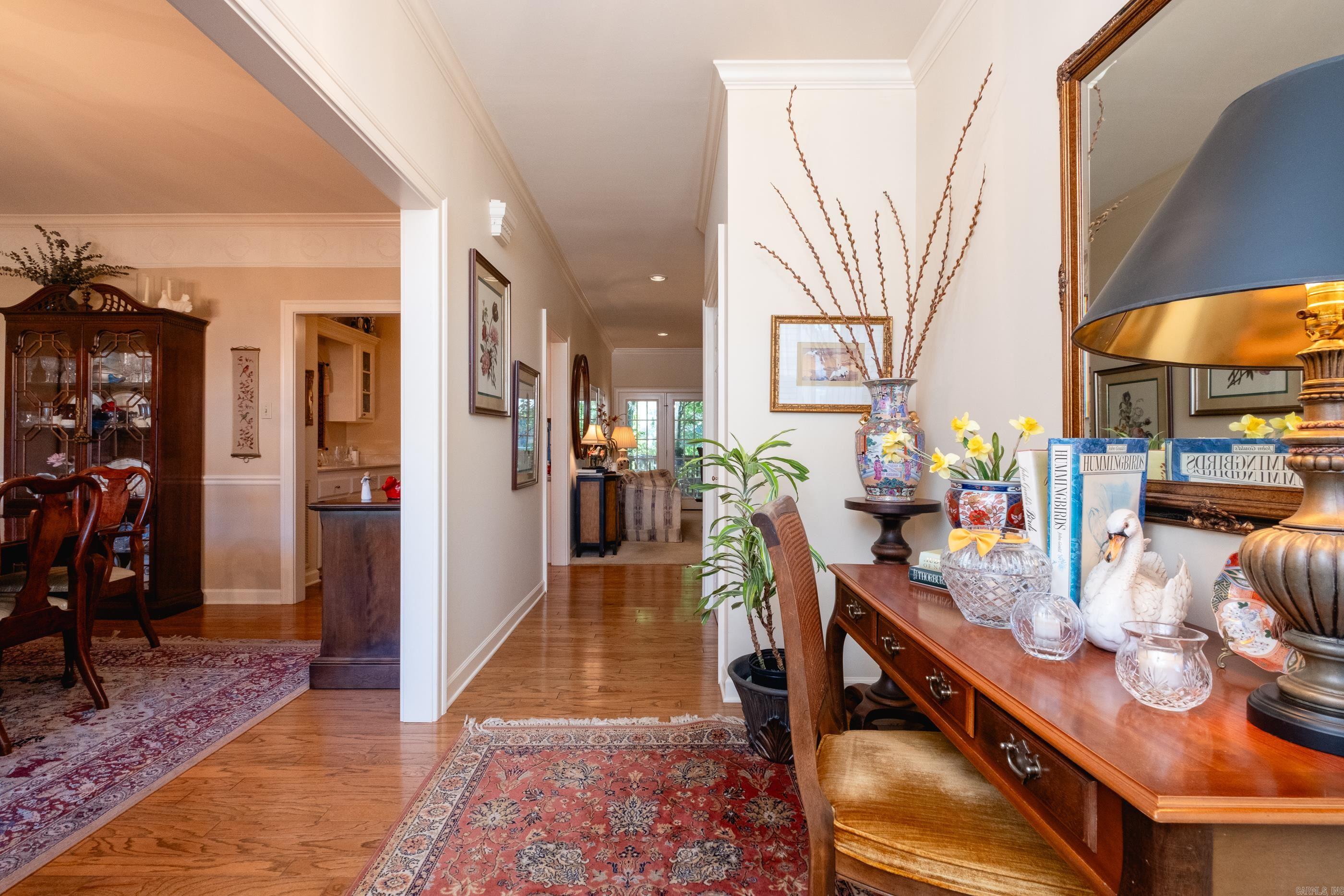 Absolutely wonderful one level house in desirable Hunter's Cove Subdivision sits on a corner lot & offers so many amenities. This one owner custom built home boasts 3 bedrooms, 2 full baths and one half bath. As soon as you step in the entry you can see this house is truly special. The dining room is so elegant and is capped off with a Lincrusta border and connects to the kitchen with a butler's pantry. The kitchen has a center island, lots of prep space, newer SS appliances, pantry, built in desk, and eat in breakfast area that opens to the den. Back steps lead to a park like patio. The primary suite is spacious with a spa like bath AND 3 walk in closets. So many other extras - laundry room w/ sink, 9 foot ceilings throughout, lots of closets for storage, ceiling fans, hall guest bath & one bedroom with wider doorways for handicap access, large storage area under house with single garage door & back door, floor attic (easy access) with wider staircase off the garage. Come see today!!