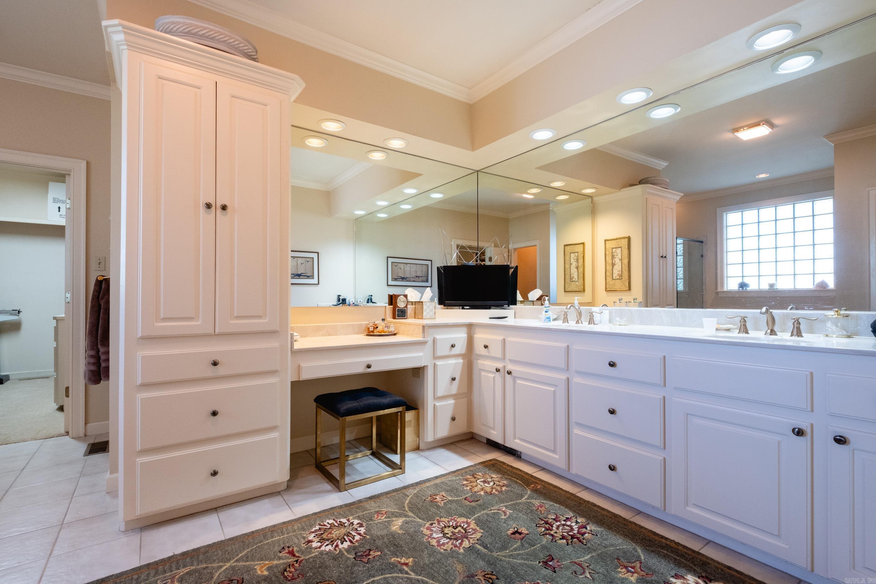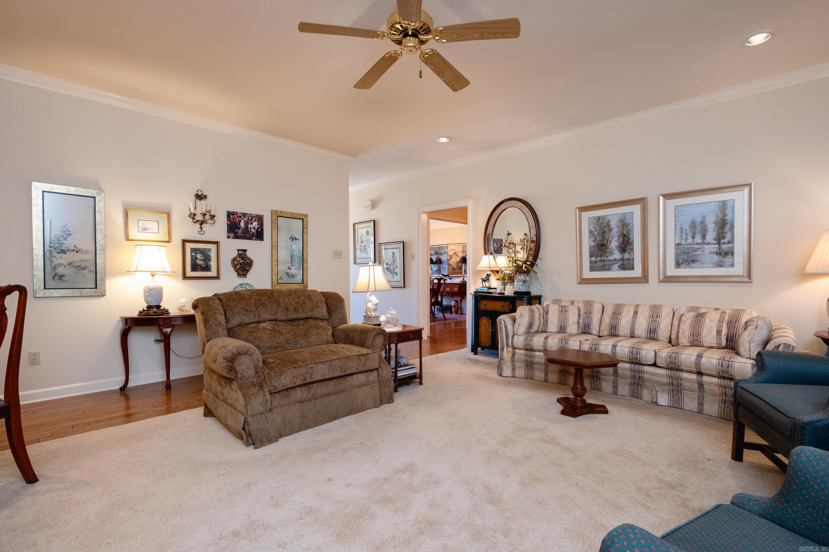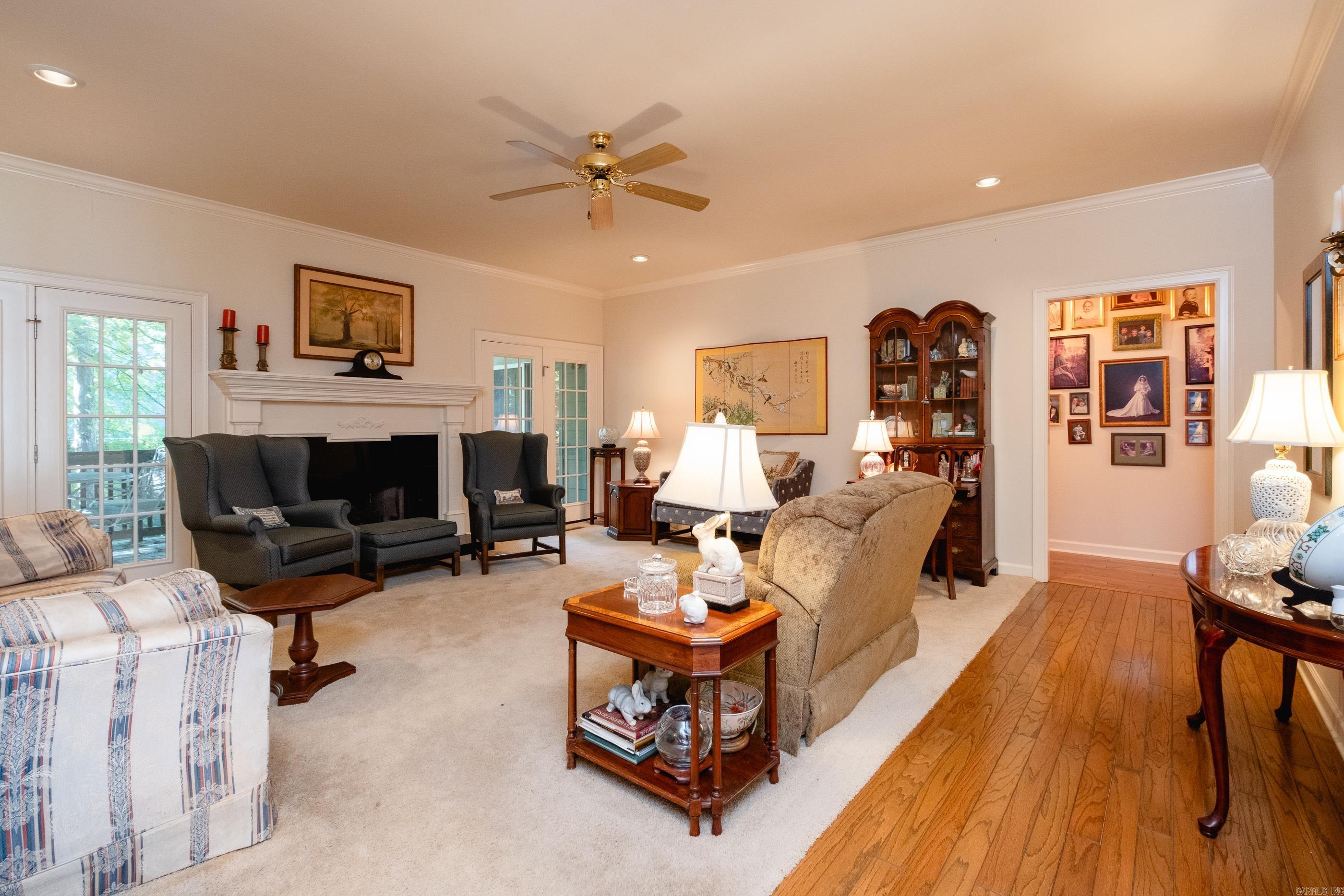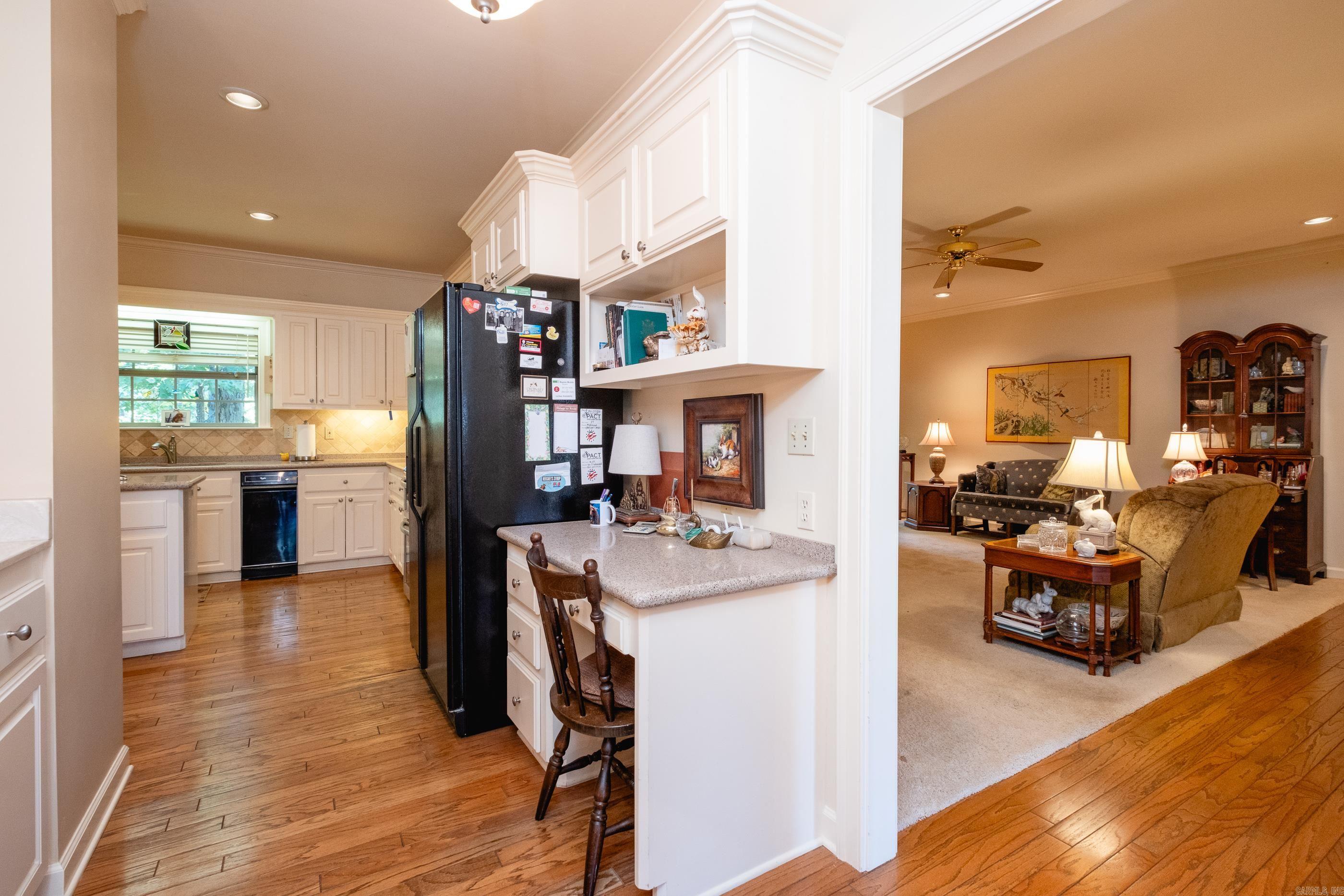 Absolutely wonderful one level house in desirable Hunter's Cove Subdivision sits on a corner lot & offers so many amenities. This one owner custom built home boasts 3 bedrooms, 2 full baths and one half bath. As soon as you step in the entry you can see this house is truly special. The dining room is so elegant and is capped off with a Lincrusta border and connects to the kitchen with a butler's pantry. The kitchen has a center island, lots of prep space, newer SS appliances, pantry, built in desk, and eat in breakfast area that opens to the den. Back steps lead to a park like patio. The primary suite is spacious with a spa like bath AND 3 walk in closets. So many other extras - laundry room w/ sink, 9 foot ceilings throughout, lots of closets for storage, ceiling fans, hall guest bath & one bedroom with wider doorways for handicap access, large storage area under house with single garage door & back door, floor attic (easy access) with wider staircase off the garage. Come see today!!