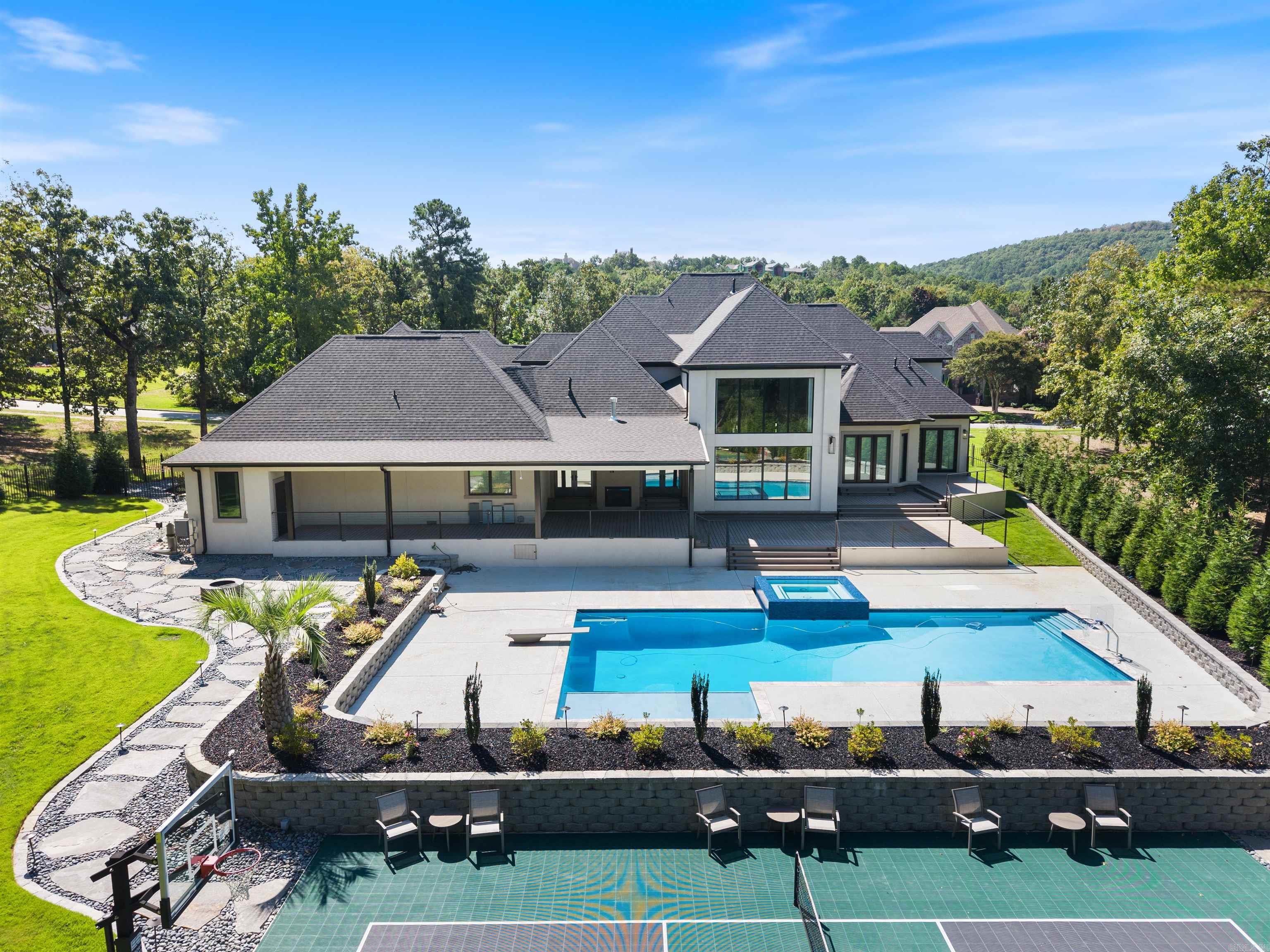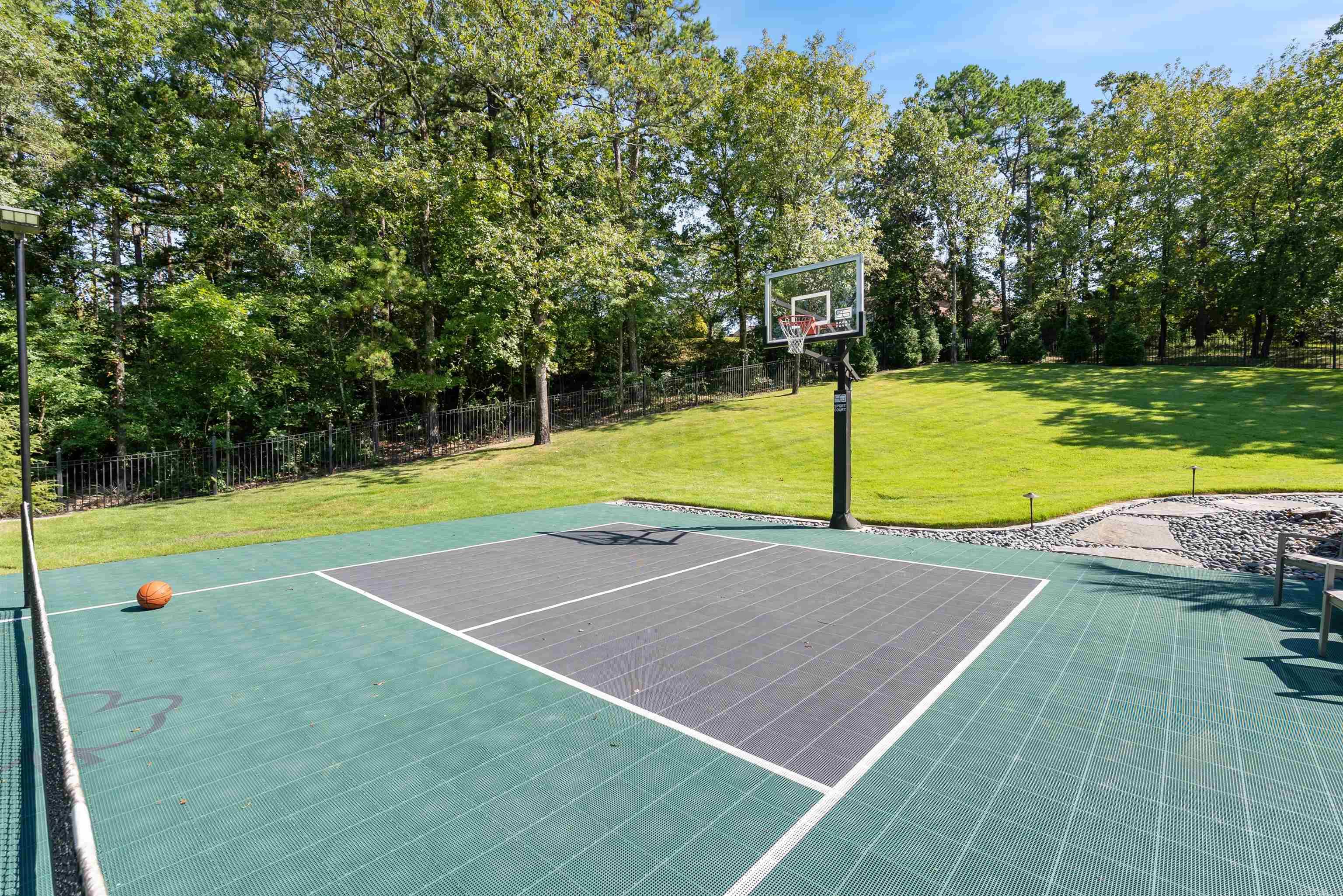 Outdoors, the property transforms into a private retreat with a beautiful pool and spa by Diamond Pools featuring a dedicated heater and chiller surrounded by “cool decking” that stays up to 30% cooler for barefoot comfort. The sport court accommodates both basketball and pickleball, while the firepit, mature landscaping, and low-maintenance composite decking provide inviting spaces for entertaining and relaxation. Additional highlights include three fireplaces, custom Hunter Douglas window treatments, four-car heated and cooled garages, and a fully integrated Control 4 system managing lighting, sound, televisions, cameras, and climate. Every detail reflects a commitment to excellence, creating a beautiful estate.