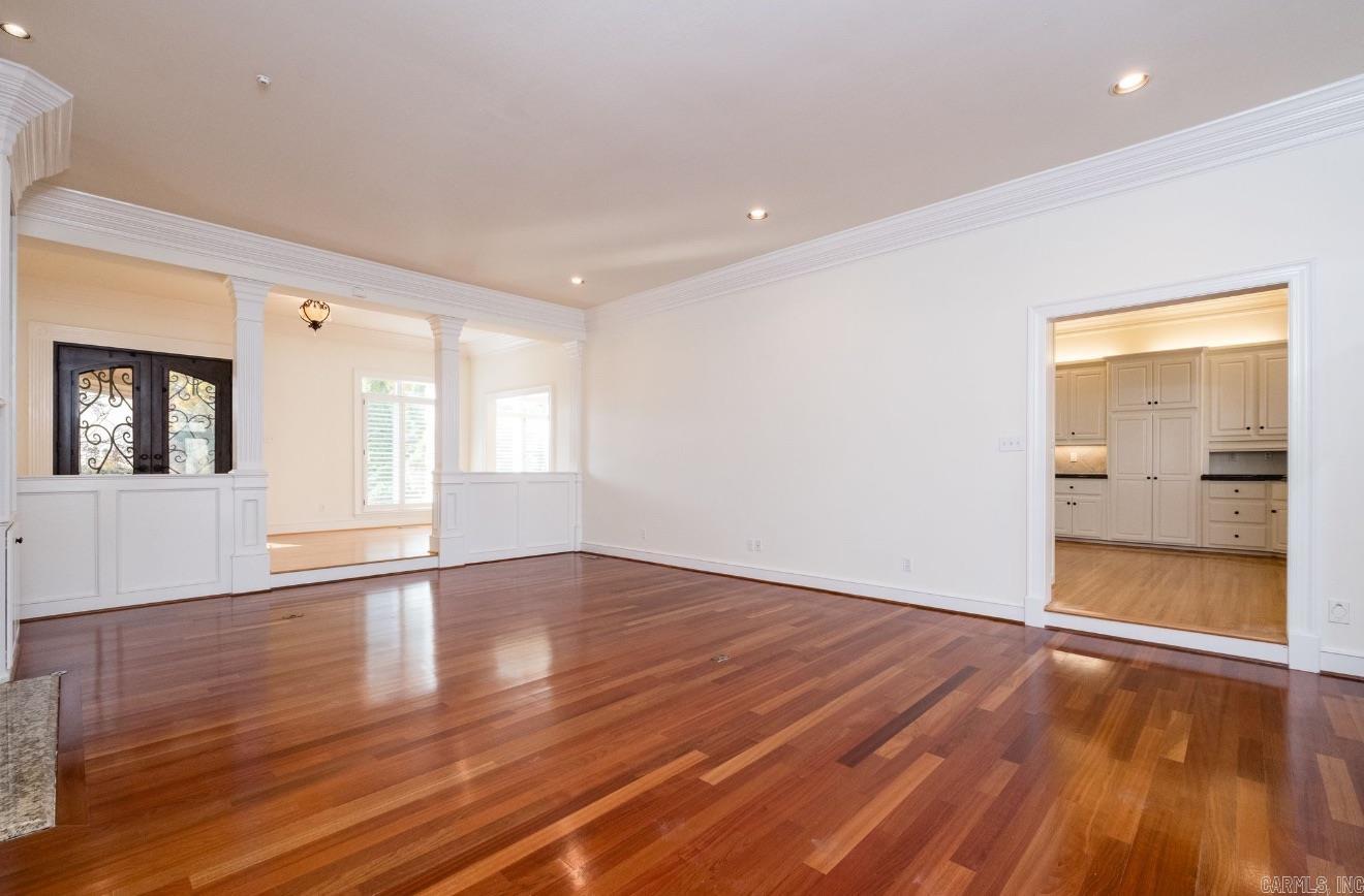 This beautiful CUSTOM home on the prestigious Founder's Course of Chenal offers a perfect blend of elegance and functionality. Enter through striking iron and glass doors to an open floor plan with NEW interior paint. This design is perfect for family living and entertaining. The sunken living room boosts exotic wood floors, beautiful fireplace, and breathtaking GOLF course views. The formal dining room flows into a spacious kitchen with center island, high-end appliances, and a cozy informal dining area. A family den with fireplace opens to a large, bricked patio, ideal for outdoor gatherings. The main level features a luxurious principal suite, a guest suite with walk-in closets, and a versatile home office/media room with a half bath and wet bar. Upstairs, enjoy a spacious game room and 3 bedrooms, 2 full baths, office nook and access to fantastic floored attic space. The gorgeous landscaped yard includes a water feature, wonderful golf course views, direct cart path access, and the home is complete with a three car (plus golf cart bay) side load garage. Come see today!