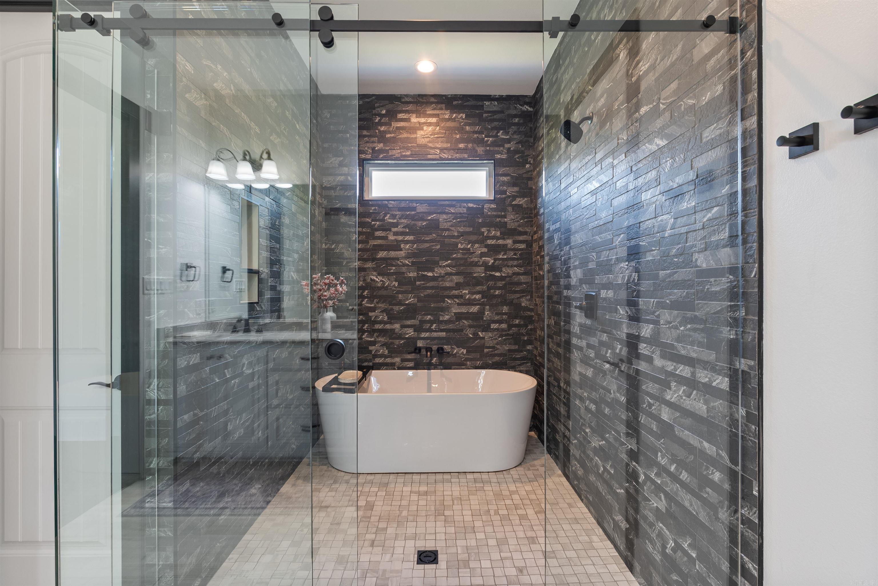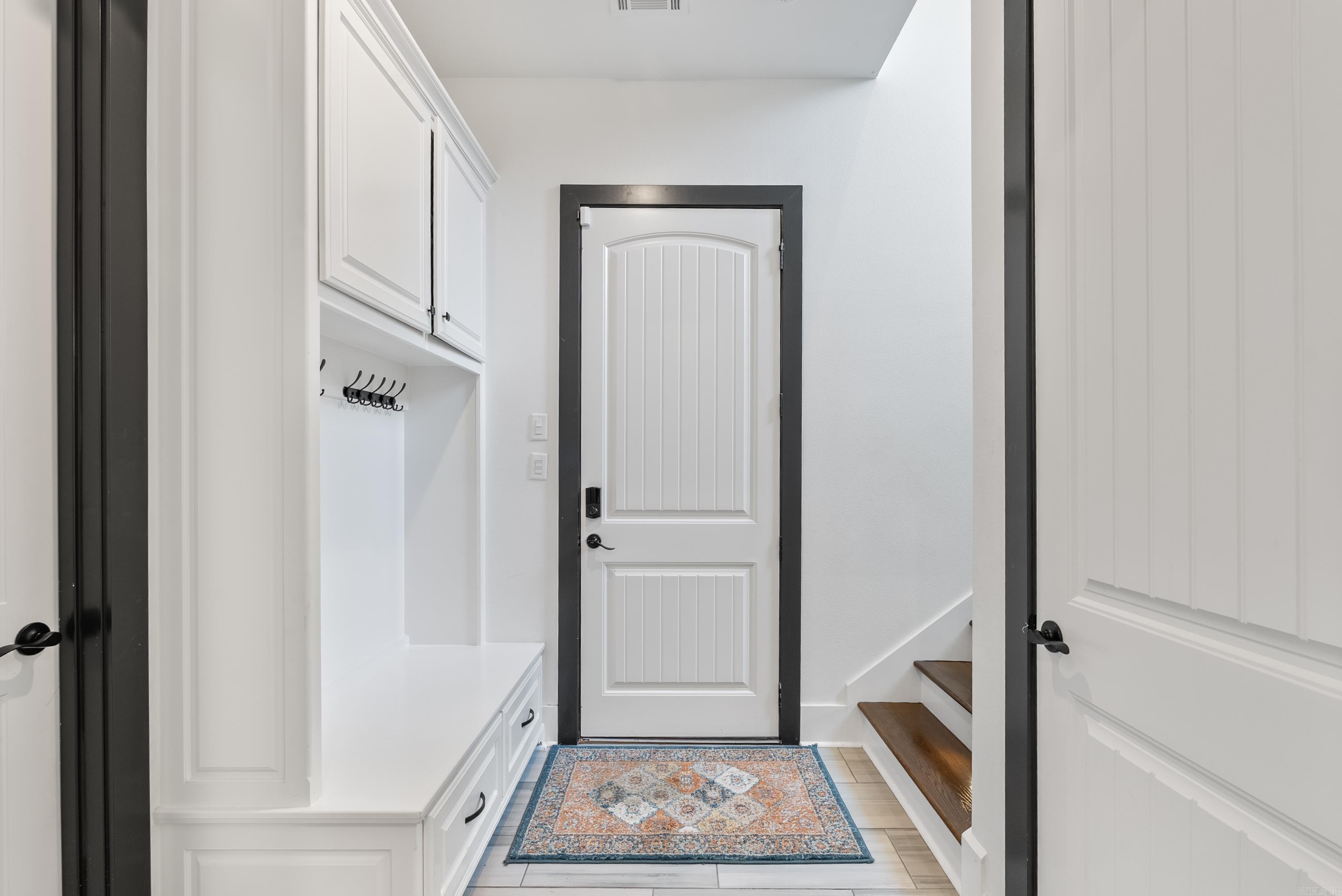 The home blends classic transitional interior design style with all the modern conveniences. The floor plan was designed and exceptionally executed, offering formal and informal spaces for entertaining and family living. The main level opens to an office with French doors adjacent to the formal dining room. The two-story great room boasts custom built-in bookcases, wood beam accents, and a wood-burning fireplace with beautiful gray stone exterior and built-in television (conveys with the sale of the home). The great room flows seamlessly into the gourmet kitchen with a convenient half bathroom for guests. The kitchen features Quartzite countertops, smart appliances including a gas cooktop, double ovens (the top oven is dual purpose also serving as a convection microwave), refrigerator with touchscreen, custom Duke cabinetry with slow-closing drawers, a large island with bar stool seating, breakfast room and a walk-in pantry. The spacious primary bedroom suite opens to the serene courtyard - perfect for enjoying your morning coffee. The primary bathroom offers double sinks, a wet area with walk-in shower and soak tub, beautiful tile, walk-in closet, and a private water closet. A guest bedroom suite is also located on the main level with an en-suite bathroom and walk-in closet. Additional main level features include a laundry room with a sink, a mud room, and additional storage space.