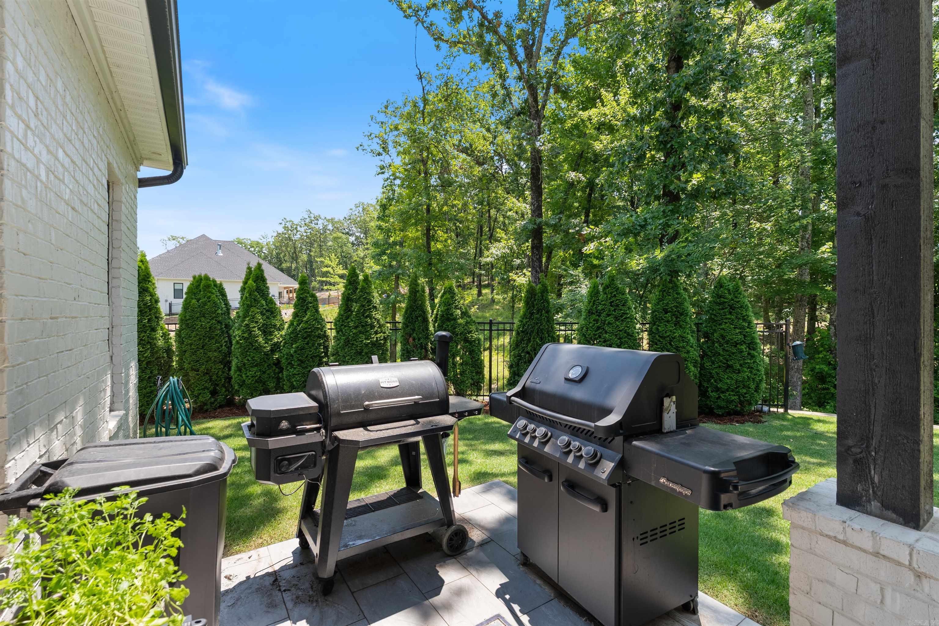 Step outside to your own private oasis: a saltwater pool and spa (with a five-year warranty) surrounded by lush, mature trees. The covered patio provides the ideal setting for outdoor dining and lounging, complete with a dedicated grill area. Additional features include nest thermostats, three-car garage, irrigation system in the front yard, exterior cameras, and an alarm system.