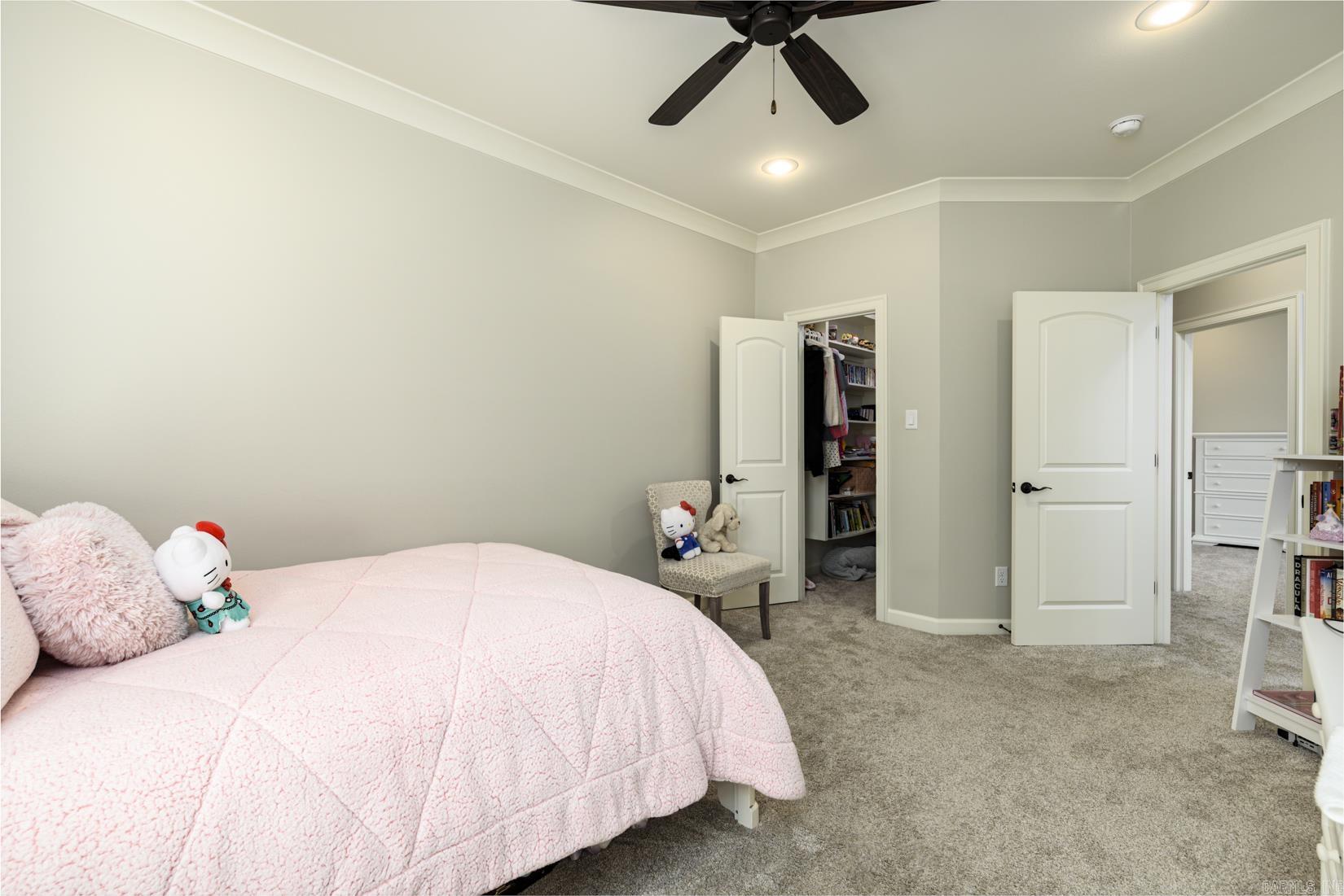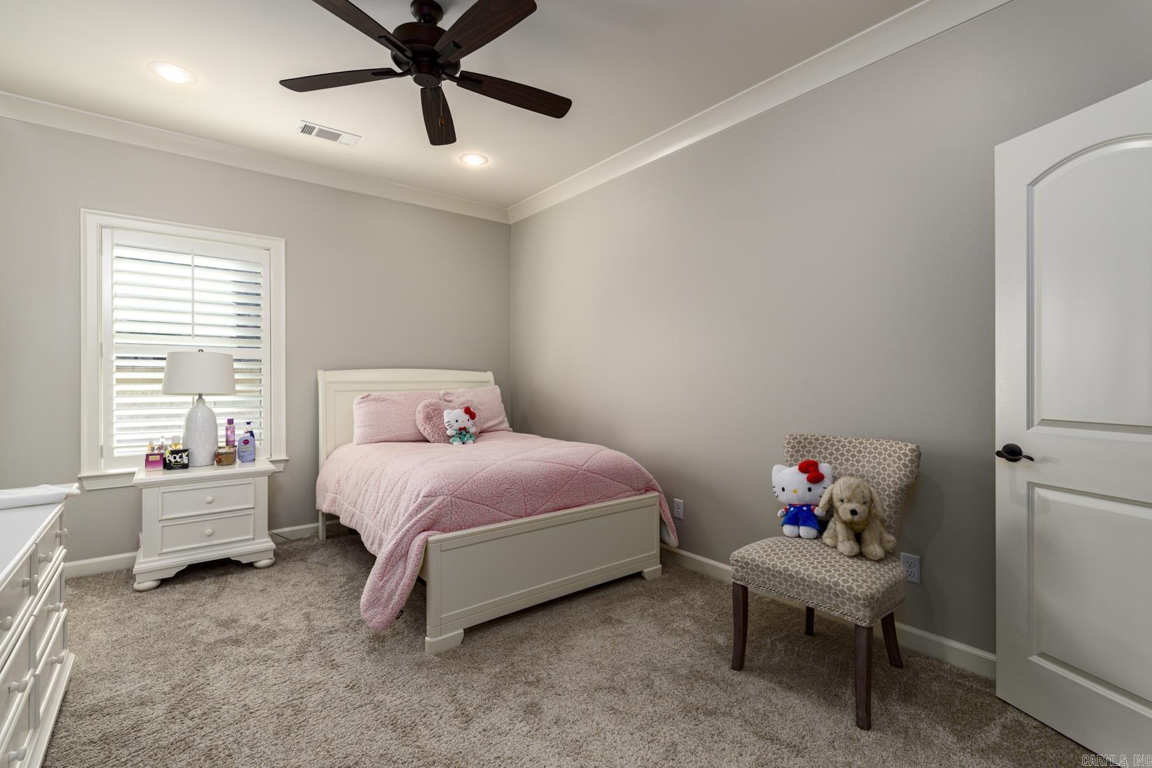 Step Into Perfection, from the moment you arrive at this custom-built home, the thoughtful design and quiet greenspace setting create an immediate sense of comfort and privacy. Inside, a welcoming library or study and a spacious formal dining room set an elegant tone. The Great Room offers a cozy fireplace and ample space for gathering, flowing seamlessly into a stunning custom kitchen with abundant cabinetry, marble countertops, tile backsplash, and stainless-steel appliances. The main-level features a luxurious principal suite with a spa-inspired bath, plus a second bedroom suite ideal for guests or multigenerational living. Upstairs includes two additional bedrooms, a full bath, and a versatile media or second living area. Outdoors, a covered patio overlooks the serene, well-kept yard backed by peaceful greenspace. Meticulously maintained and better than new, this home blends quality, comfort, and timeless appeal at 21 Rosans Court.