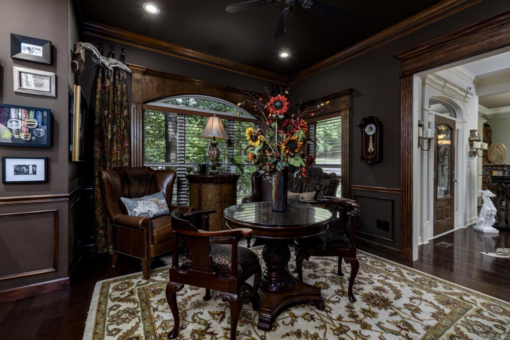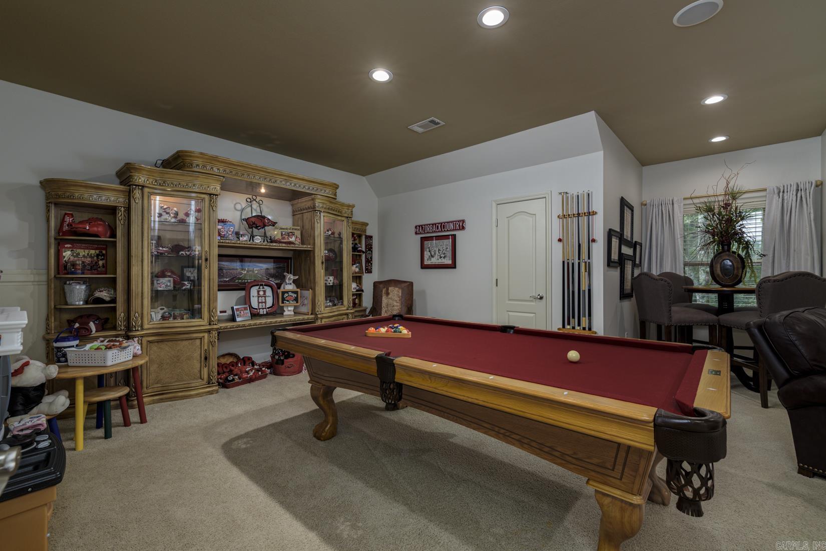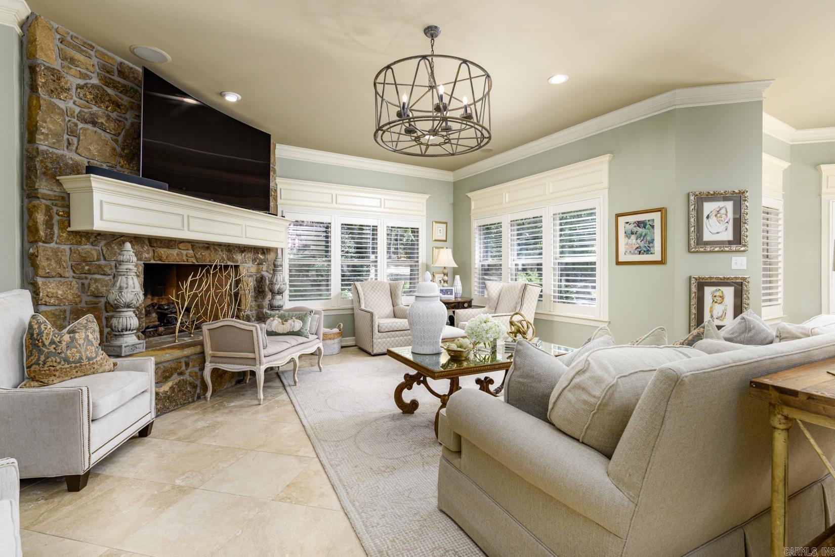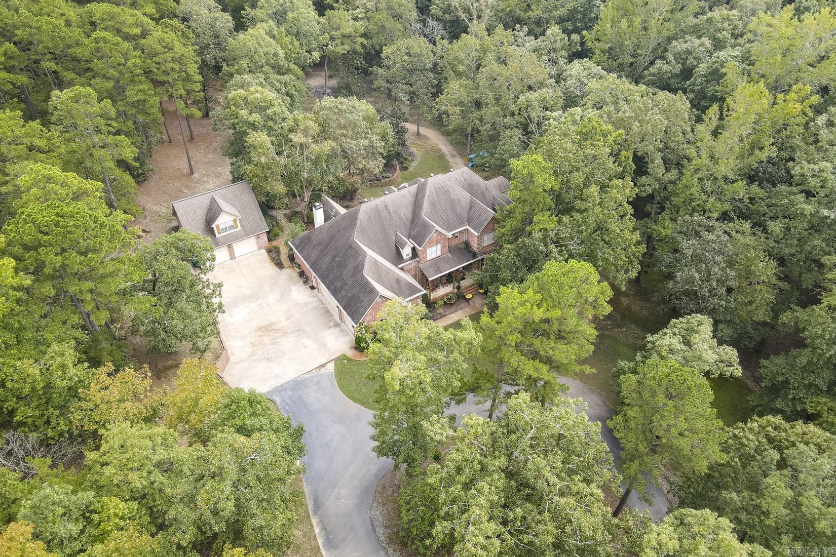 Peaceful retreat offering privacy, space & abundant tranquil entertaining areas outdoors, as well as inside. A gated, graceful drive leads to this well-maintained home w/ inviting front porch. Step inside to find soaring ceilings, beautiful moldings and pretty hardwood floors. To the right of the foyer is a bar area with ice machine & beverage drawers, to the left of the foyer is a spacious Formal Dining area that opens to the 2 story greatroom overlooking deck and swimming pool. The chef's kitchen was remodeled in 2018 w/ all new appliances including, a 6 burner gas stove w/ griddle & pot filler, built-in fridge, microwave, warming drawer, 2 dishwashers, Sonic ice machine, hot water dispenser & new cabinetry. Conveniently located nearby is the breakfast area & hearth room. Travertine floors & lots of light make for a great entertaining area. The primary bedroom suite has a FP, large walk-in closet, and office/nursery nearby. Upstairs are 3 bedrooms & 2 baths plus large game room. The home has a 3 car garage & additional detached 3 car garage w/ upstairs room currently used as an exercise room. The saltwater gunnite pool and gazebo all make for a private backyard oasis. See remarks