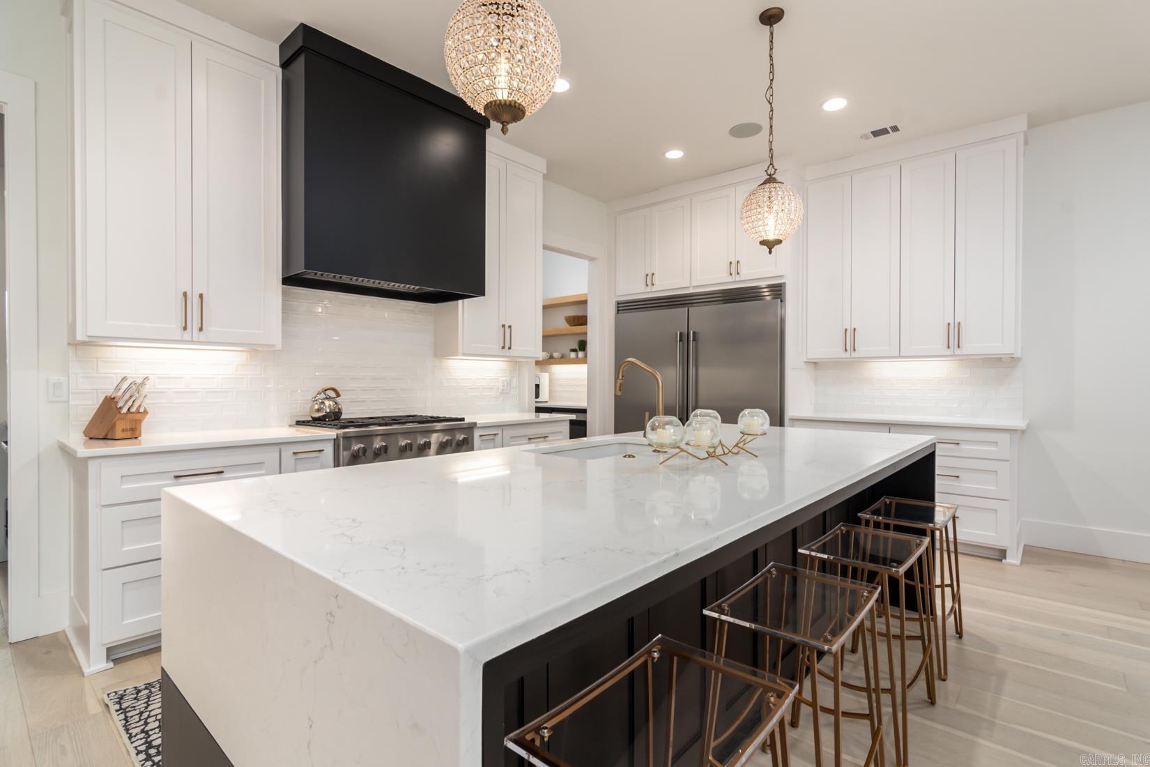 Welcome home in the exclusive gated community of Bella Rosa Estates! This beautiful home boasts detailed craftsmanship & an exceptional floor plan designed to seamlessly merge sophistication with comfort - all in a single story! Step through the iron front doors into the foyer open to the dining room & great room adorned with a coffered wooden ceiling and wet bar. The gourmet kitchen is a chef's delight, featuring a commercial gas range, double ovens, a built-in refrigerator and freezer, two dishwashers, and a charming coffee bar with a microwave drawer. The cozy hearth room offers picturesque views of the backyard through expansive windows and doors, flooding the space with natural light. The adjacent media room provides a third living space perfect for entertaining & family living. Entertain in style on the spacious patio, extending your living space outdoors for dining and gatherings. Retreat to the primary bedroom suite, adorned with custom draperies, a spa-like bathroom, and a spacious closet. Two guest bedrooms share a jack-and-jill bathroom, while a fourth bedroom boasts its own ensuite bathroom. Three-car garage, wooden fence, Pella windows & doors plus much more!