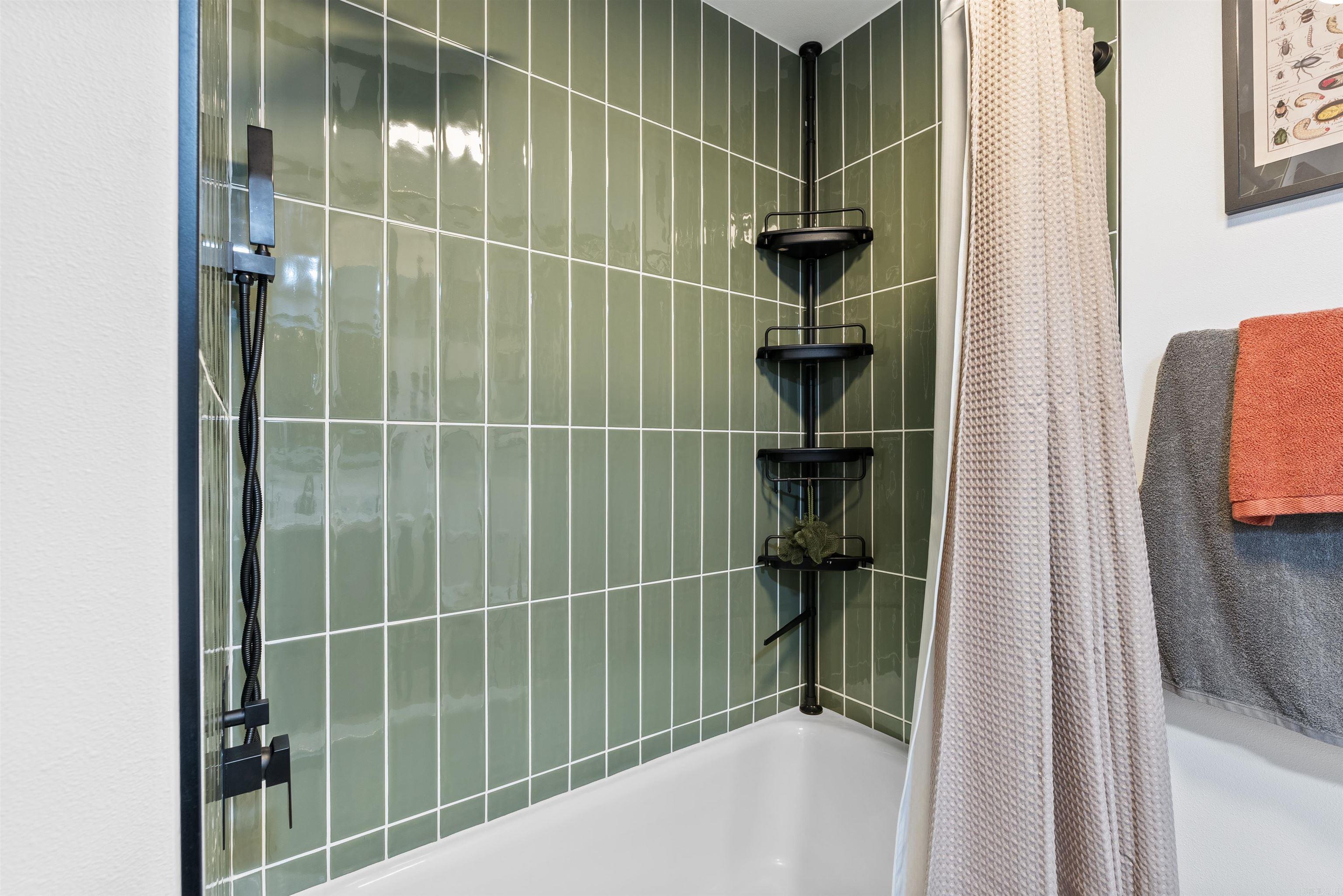 Upstairs, the primary suite features an electric fireplace, a generous walk-in closet, and a remodeled private bathroom with modern finishes. Two additional bedrooms provide ample storage and share a beautifully remodeled bathroom.
