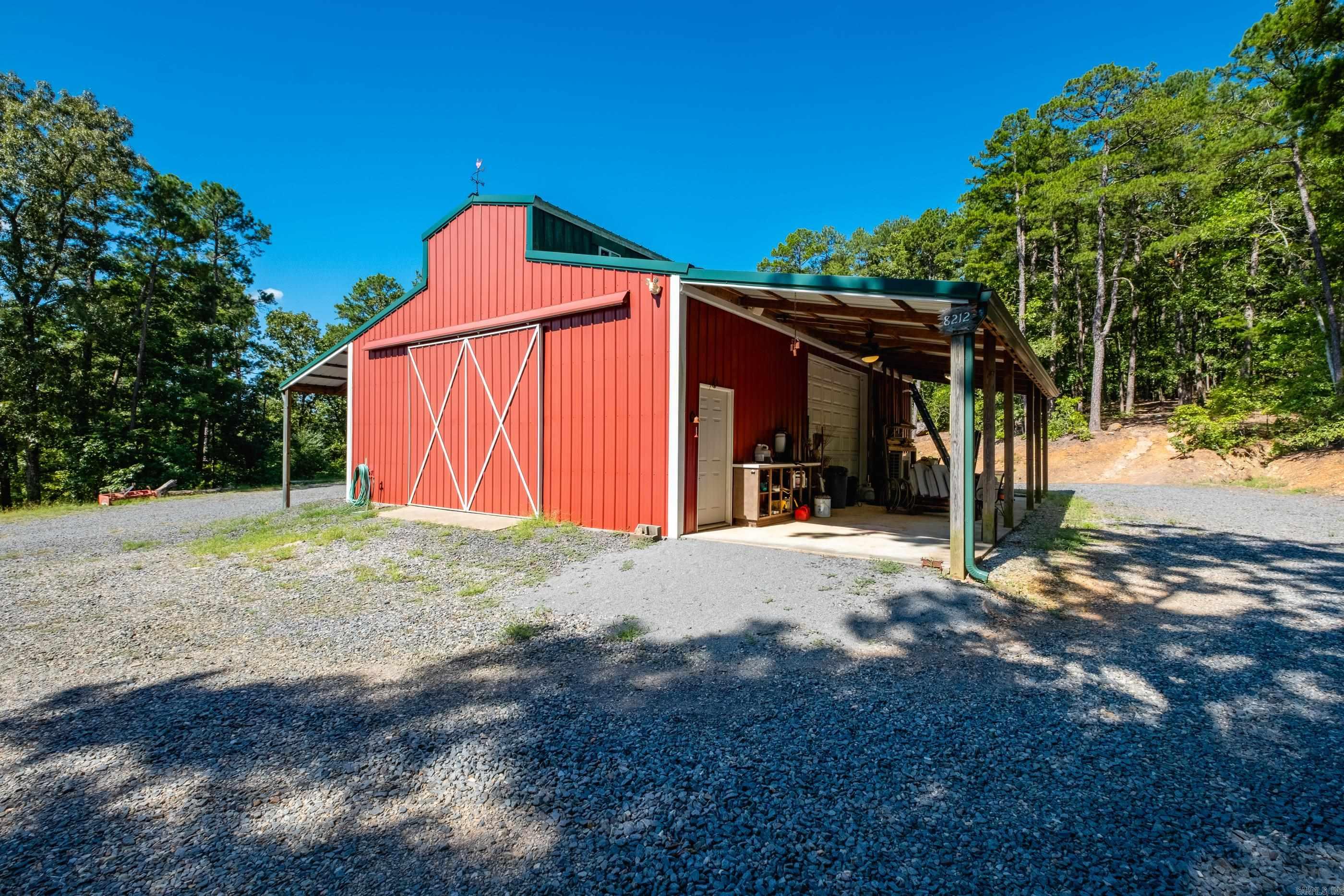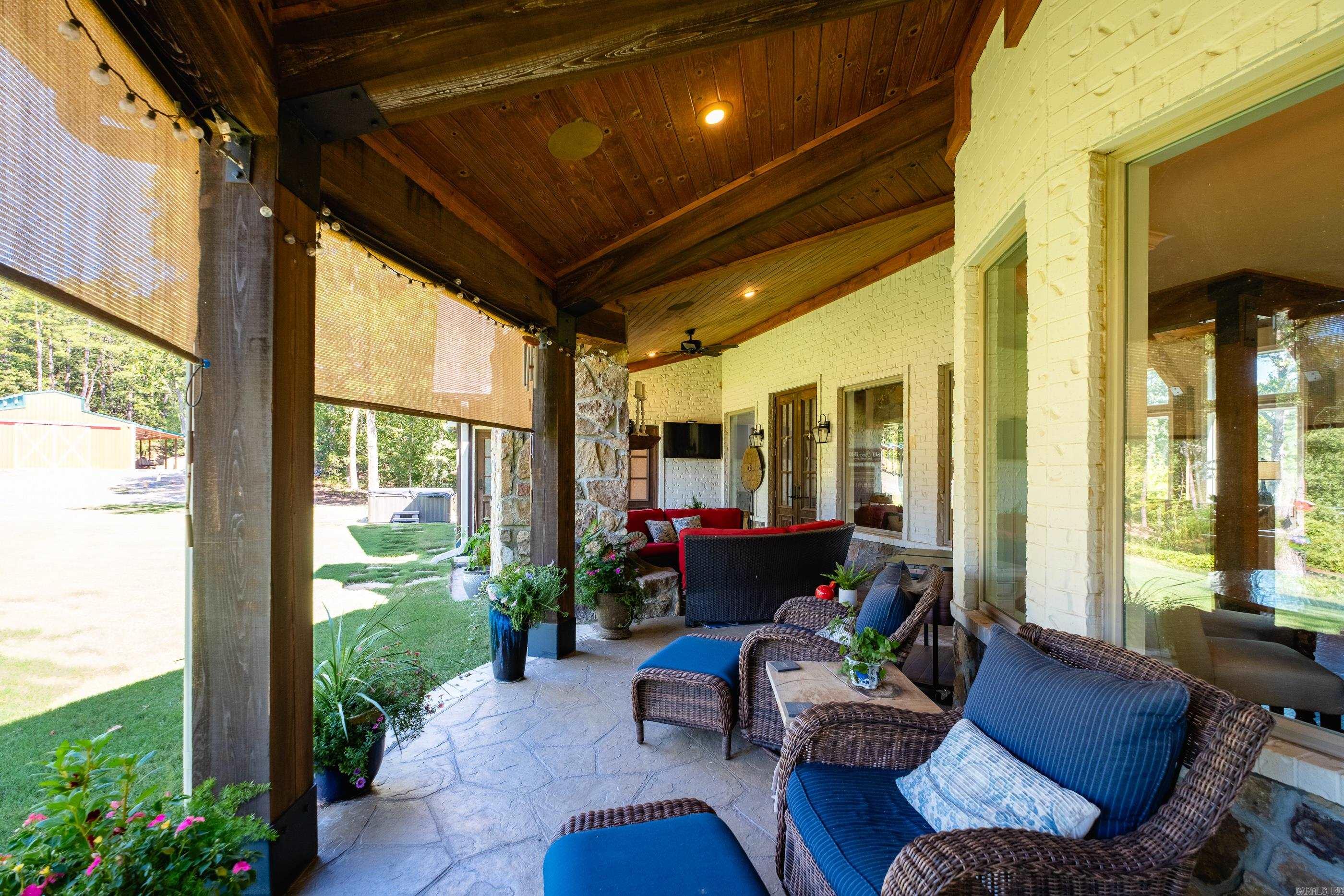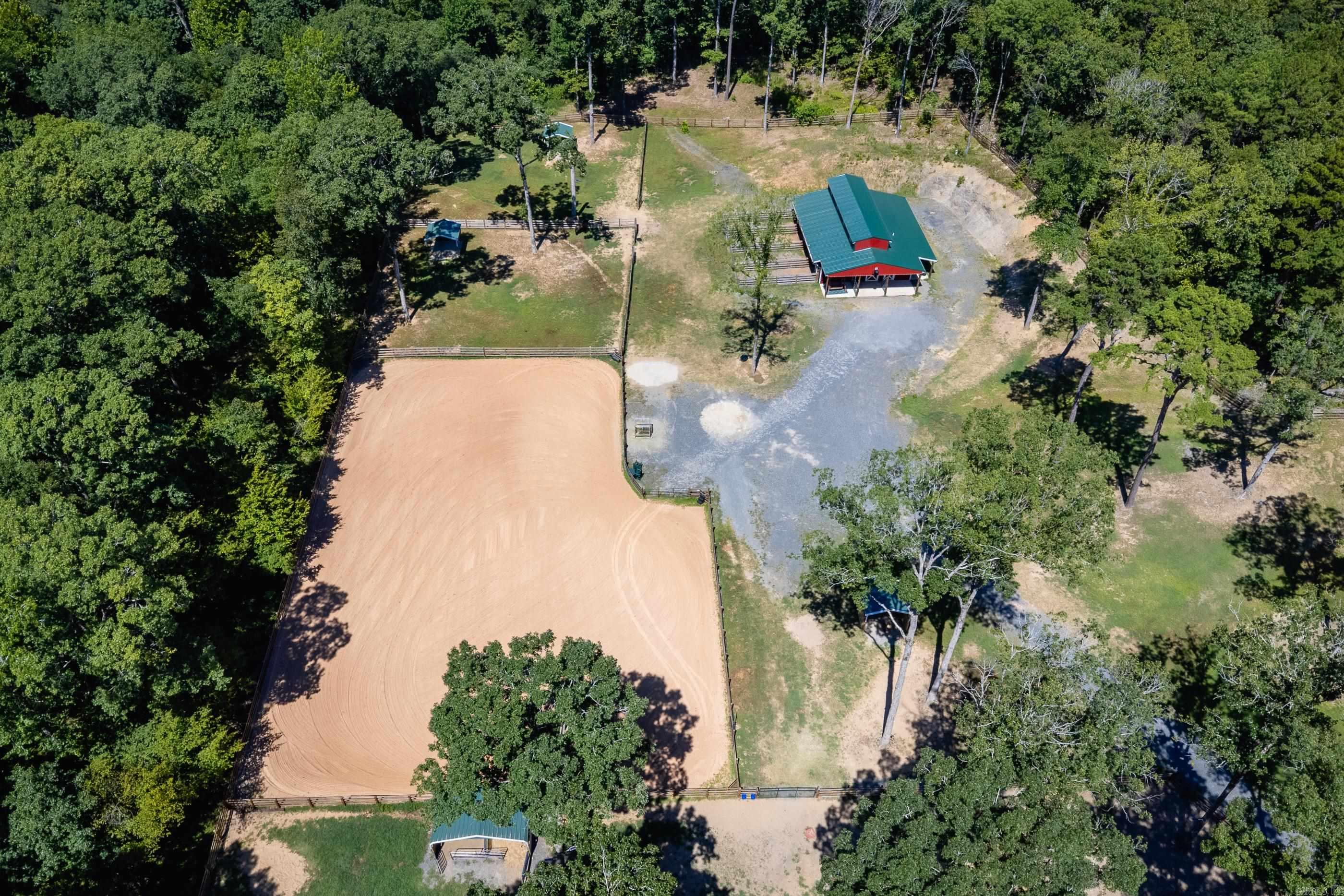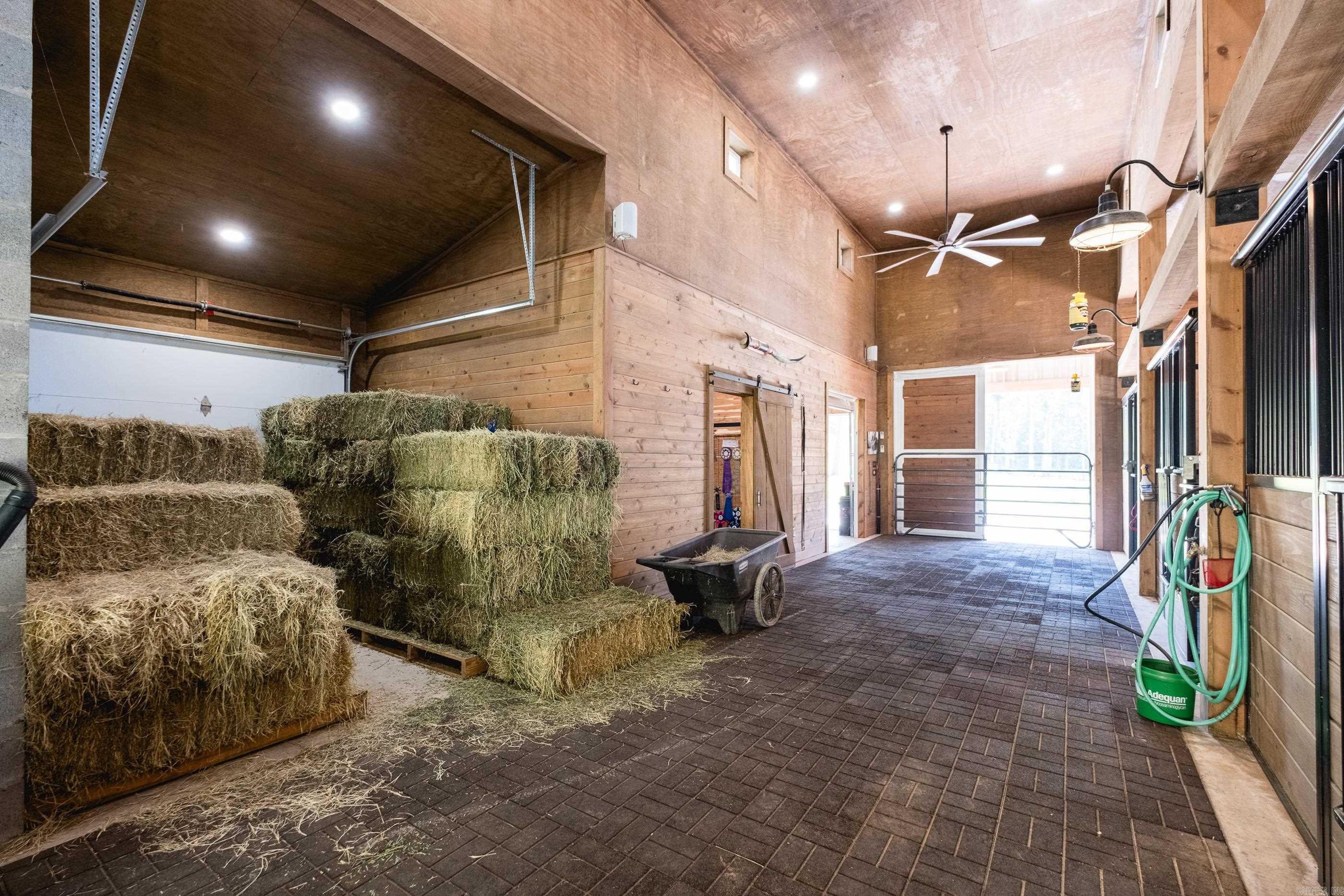 This exceptional equestrian property in Roland (bordering Ferndale) boasts an array of custom-built amenities designed for comfort, utility, and luxury. Key highlights include a 36'x48' custom equestrian barn with four 12'x12' stalls, individual run-outs, indoor wash bay, and cedar-lined tack room with mini split HVAC--all complemented by a fenced 4+ acre pasture with riding arena, paddocks, and loafing sheds. Additional improvements include a 30'x40' foam-insulated shop with mini-split HVAC, a detached 2-car garage with a 662+- sq ft upstairs efficiency apartment (both have own mini-split HVAC), and multiple equipment/trailer sheds and storage The main house is designed with rustic elegance and features 4 bdrms, 3 baths, gourmet kitchen, wet bar, a safe room/wine cellar, climate-controlled dog room with a bathing station, and scenic views of a stocked pond w/ fountain and the equestrian facility. Outdoor spaces are enhanced with irrigation, solar lighting, and extensive fencing using 4-rail corral board. Numerous items convey, including an automatic generator, hot tub, three refrigerators, AV equipment, and more, adding turnkey value to this remarkable property!