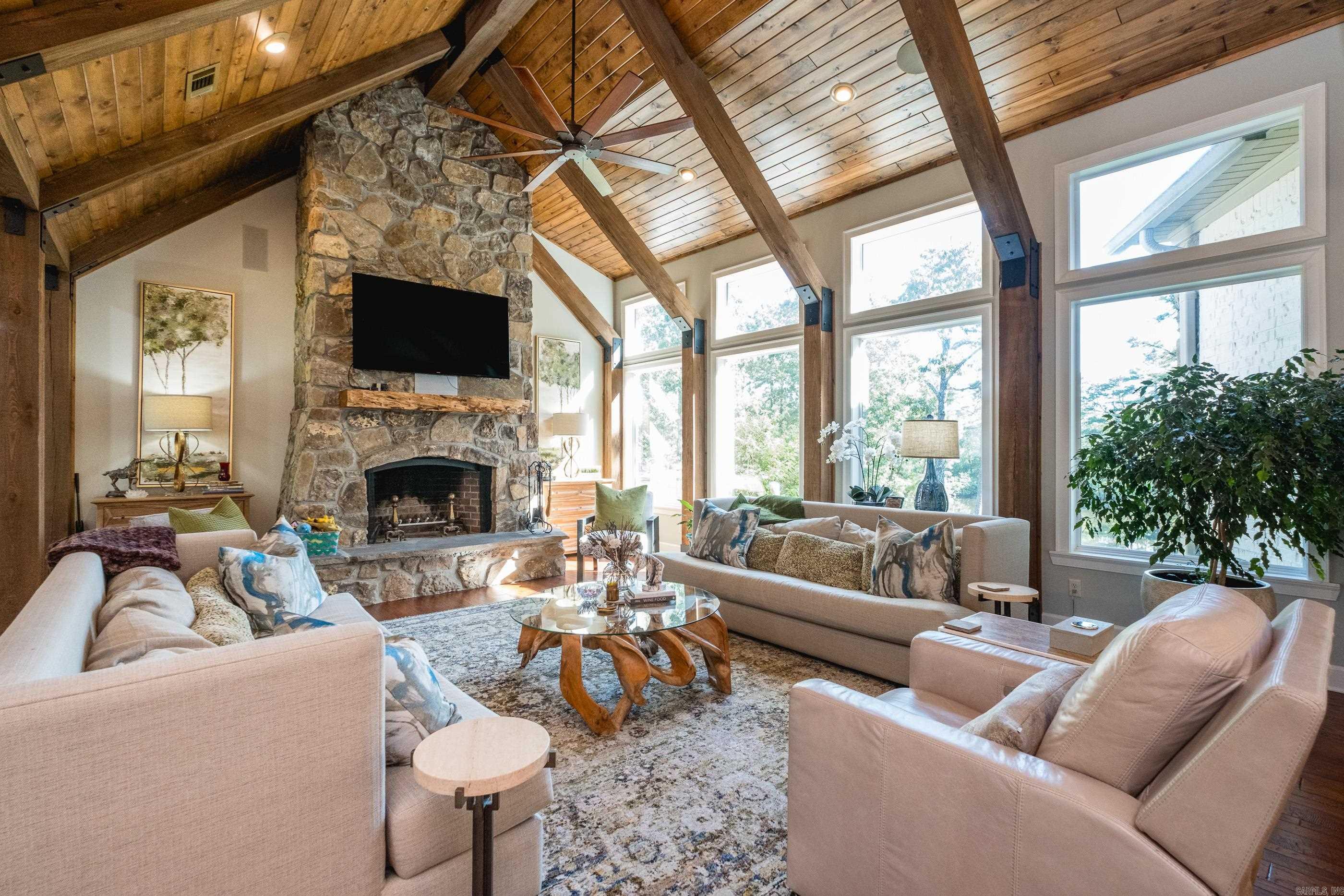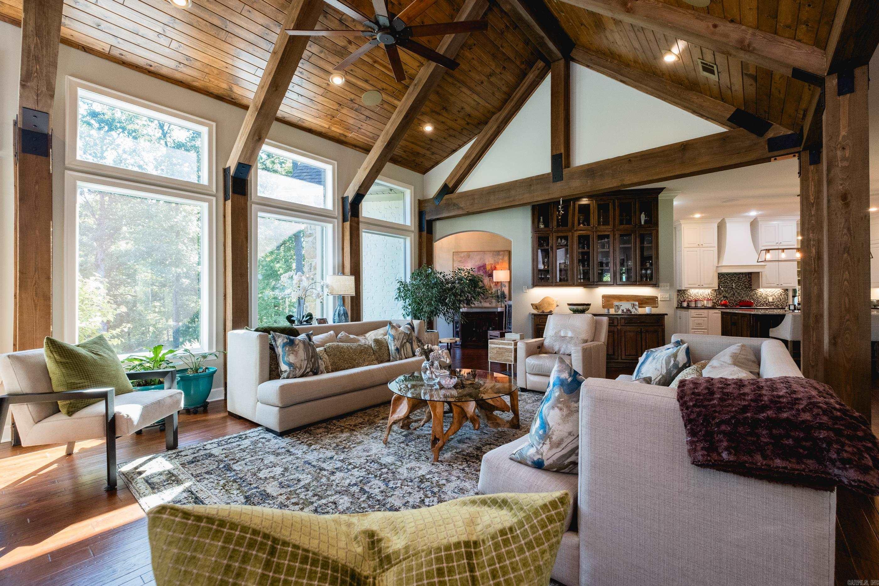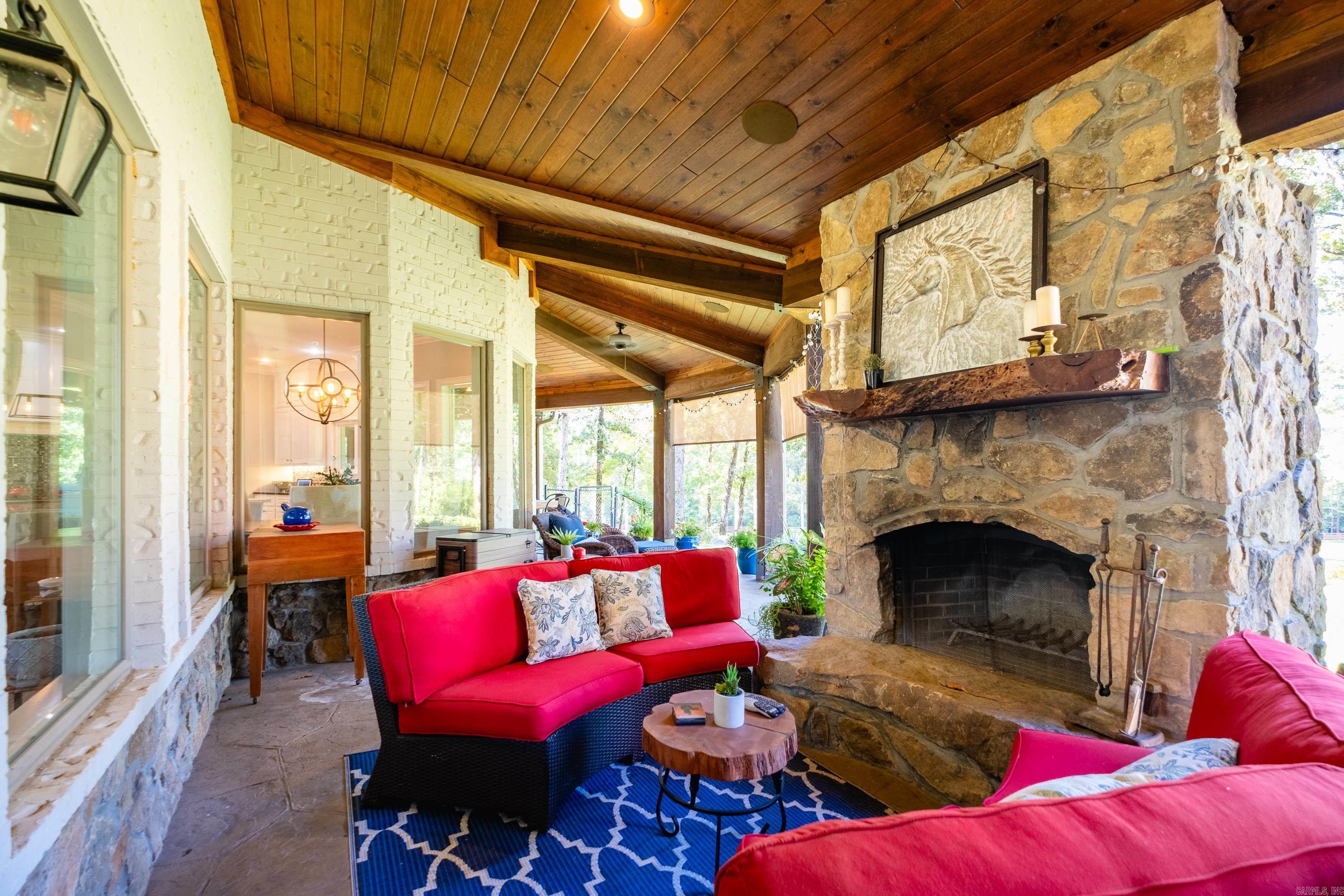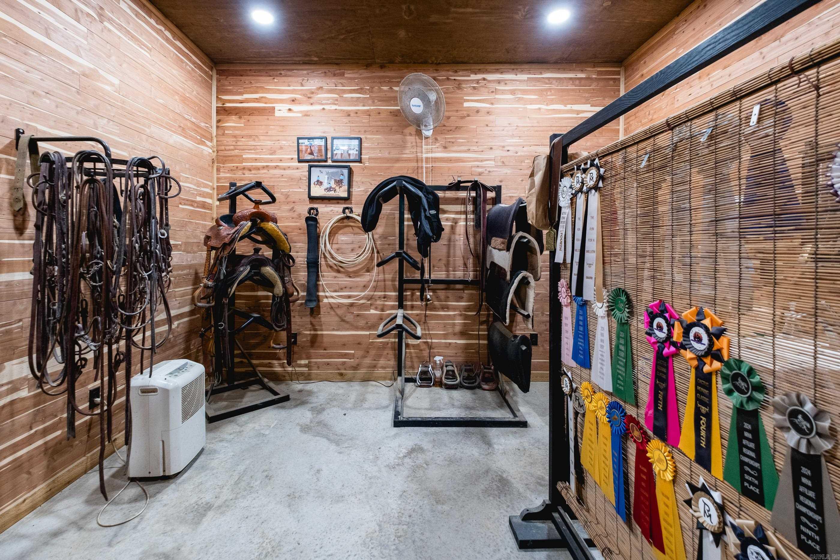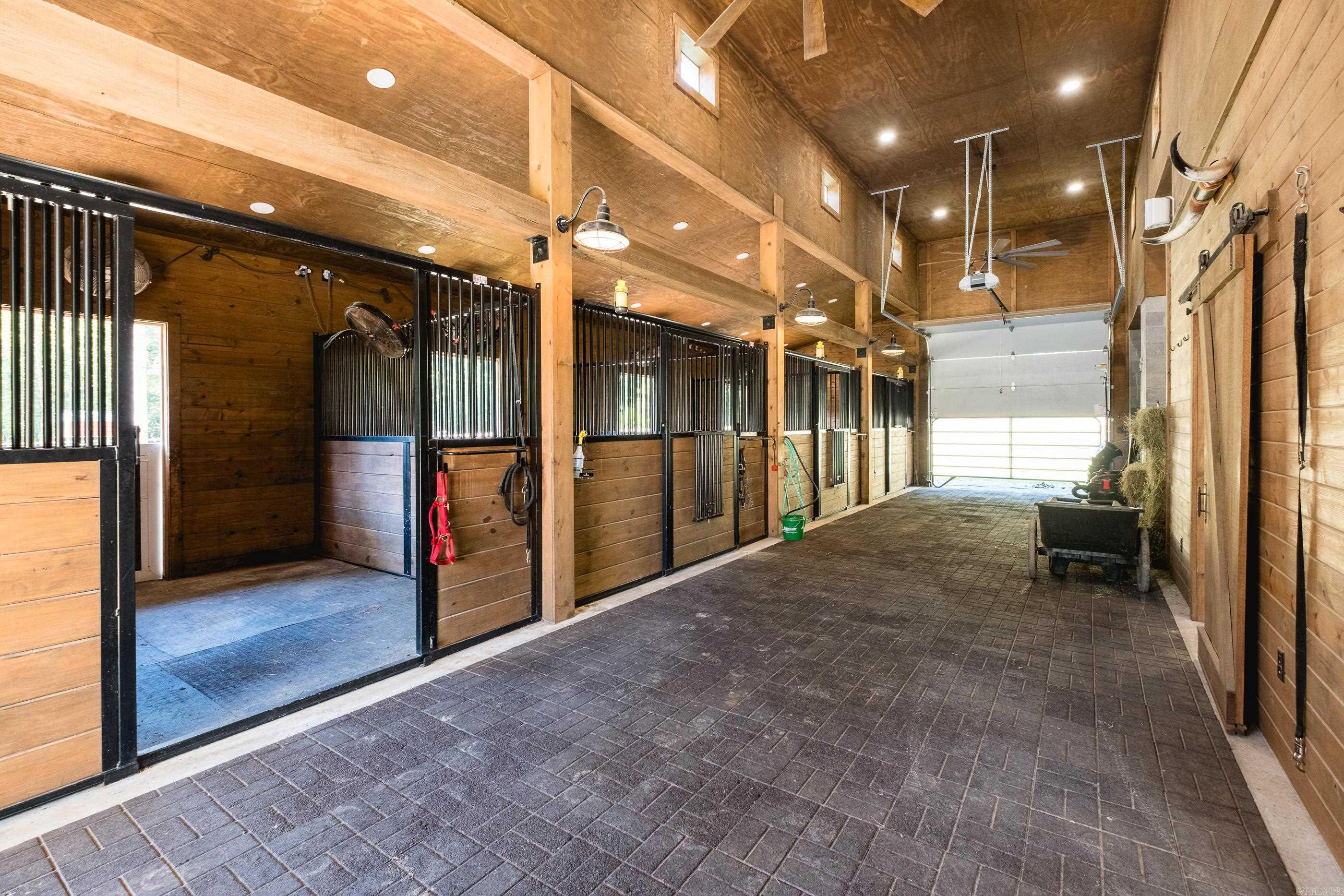 This exceptional equestrian property in Roland (bordering Ferndale) boasts an array of custom-built amenities designed for comfort, utility, and luxury. Key highlights include a 36'x48' custom equestrian barn with four 12'x12' stalls, individual run-outs, indoor wash bay, and cedar-lined tack room with mini split HVAC--all complemented by a fenced 4+ acre pasture with riding arena, paddocks, and loafing sheds. Additional improvements include a 30'x40' foam-insulated shop with mini-split HVAC, a detached 2-car garage with a 662+- sq ft upstairs efficiency apartment (both have own mini-split HVAC), and multiple equipment/trailer sheds and storage The main house is designed with rustic elegance and features 4 bdrms, 3 baths, gourmet kitchen, wet bar, a safe room/wine cellar, climate-controlled dog room with a bathing station, and scenic views of a stocked pond w/ fountain and the equestrian facility. Outdoor spaces are enhanced with irrigation, solar lighting, and extensive fencing using 4-rail corral board. Numerous items convey, including an automatic generator, hot tub, three refrigerators, AV equipment, and more, adding turnkey value to this remarkable property!
