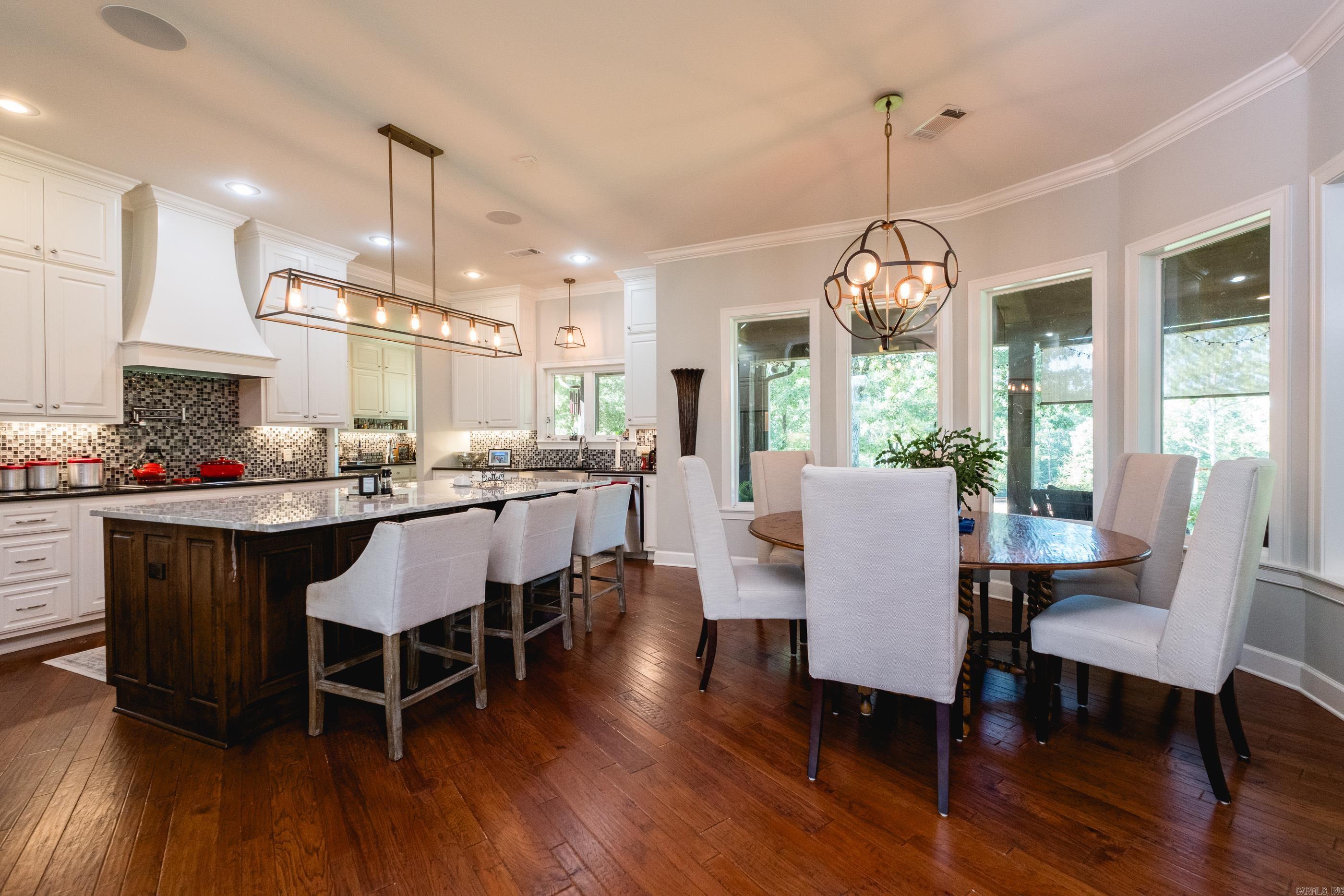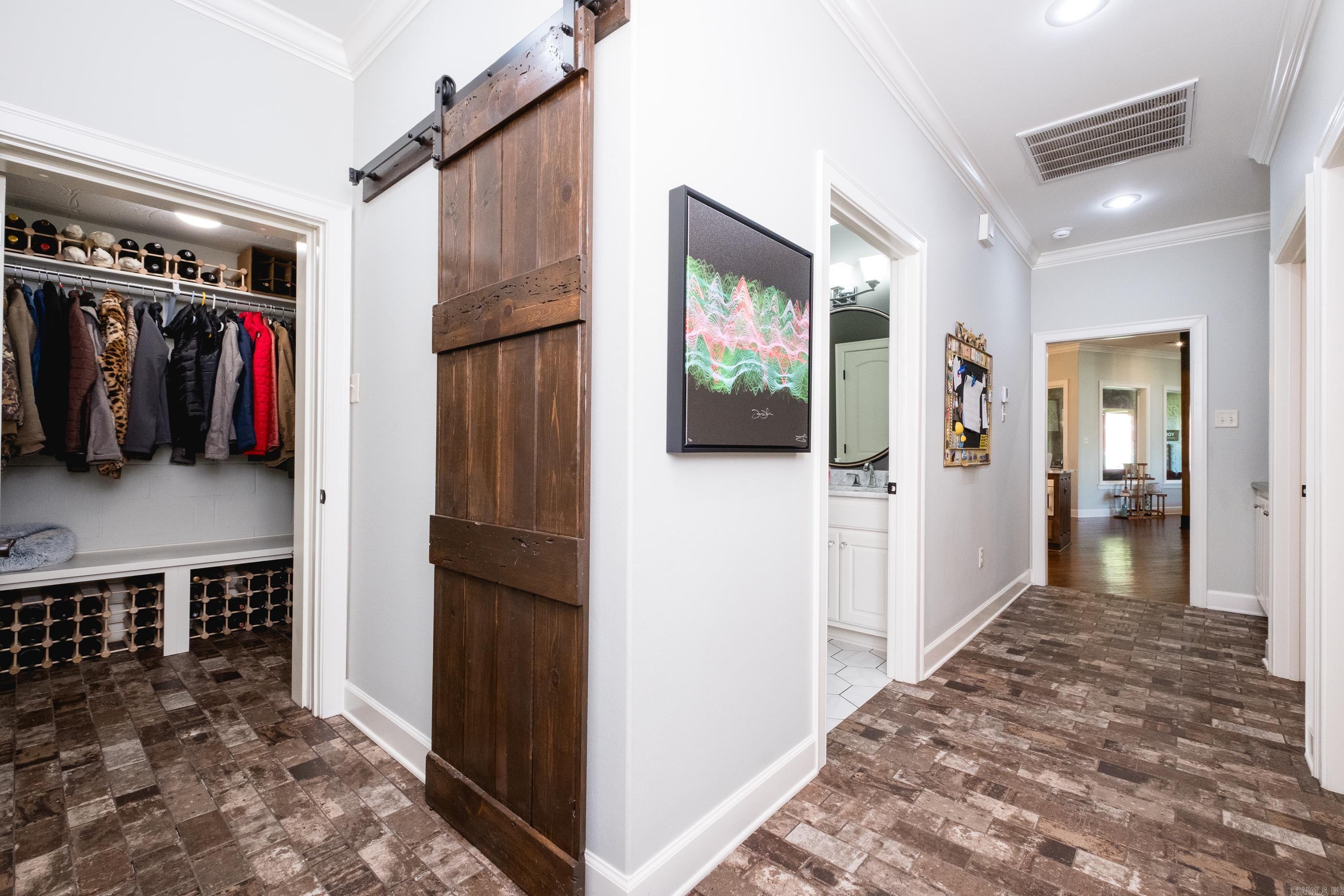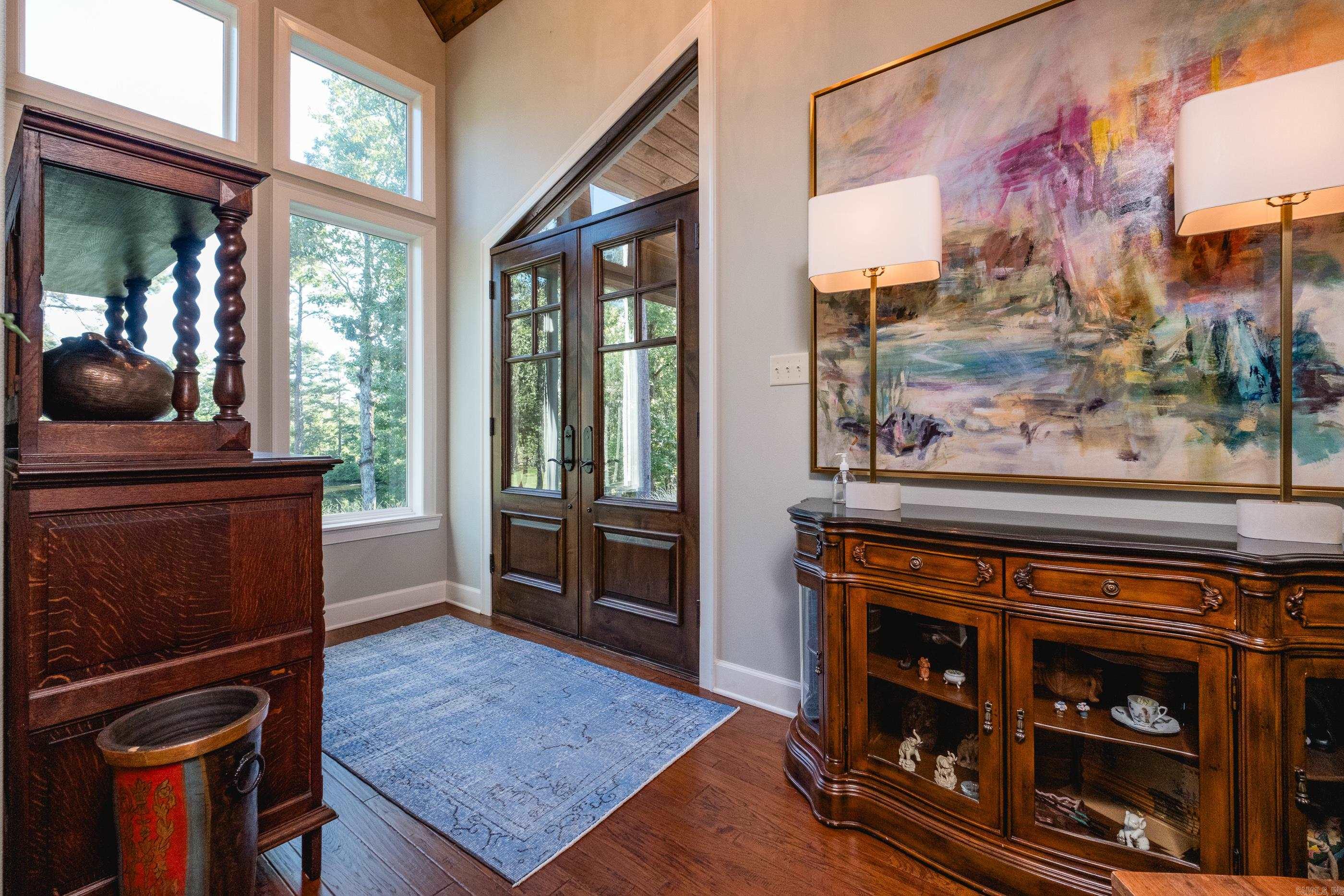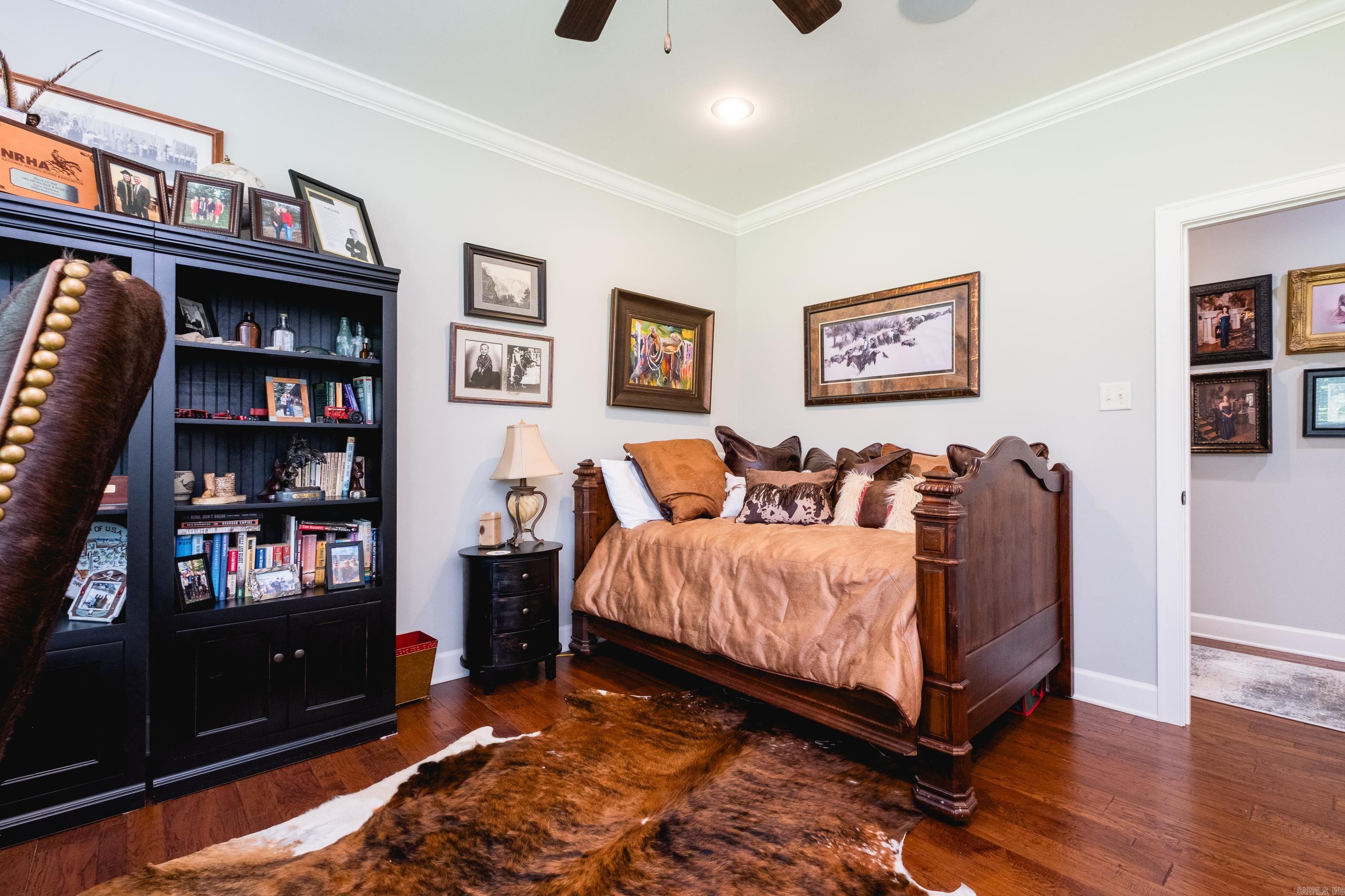 This exceptional equestrian property in Roland (bordering Ferndale) boasts an array of custom-built amenities designed for comfort, utility, and luxury. Key highlights include a 36'x48' custom equestrian barn with four 12'x12' stalls, individual run-outs, indoor wash bay, and cedar-lined tack room with mini split HVAC--all complemented by a fenced 4+ acre pasture with riding arena, paddocks, and loafing sheds. Additional improvements include a 30'x40' foam-insulated shop with mini-split HVAC, a detached 2-car garage with a 662+- sq ft upstairs efficiency apartment (both have own mini-split HVAC), and multiple equipment/trailer sheds and storage The main house is designed with rustic elegance and features 4 bdrms, 3 baths, gourmet kitchen, wet bar, a safe room/wine cellar, climate-controlled dog room with a bathing station, and scenic views of a stocked pond w/ fountain and the equestrian facility. Outdoor spaces are enhanced with irrigation, solar lighting, and extensive fencing using 4-rail corral board. Numerous items convey, including an automatic generator, hot tub, three refrigerators, AV equipment, and more, adding turnkey value to this remarkable property!