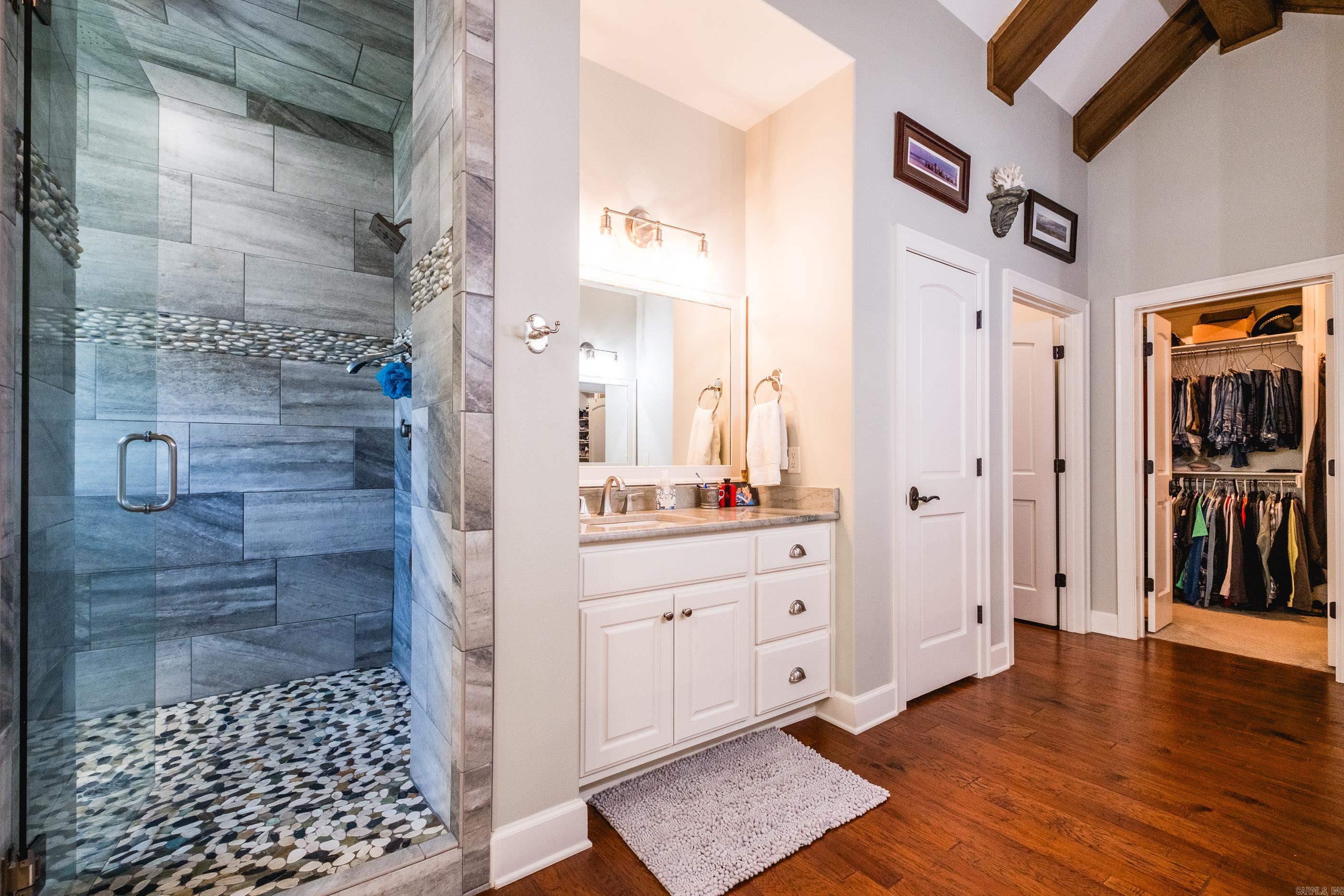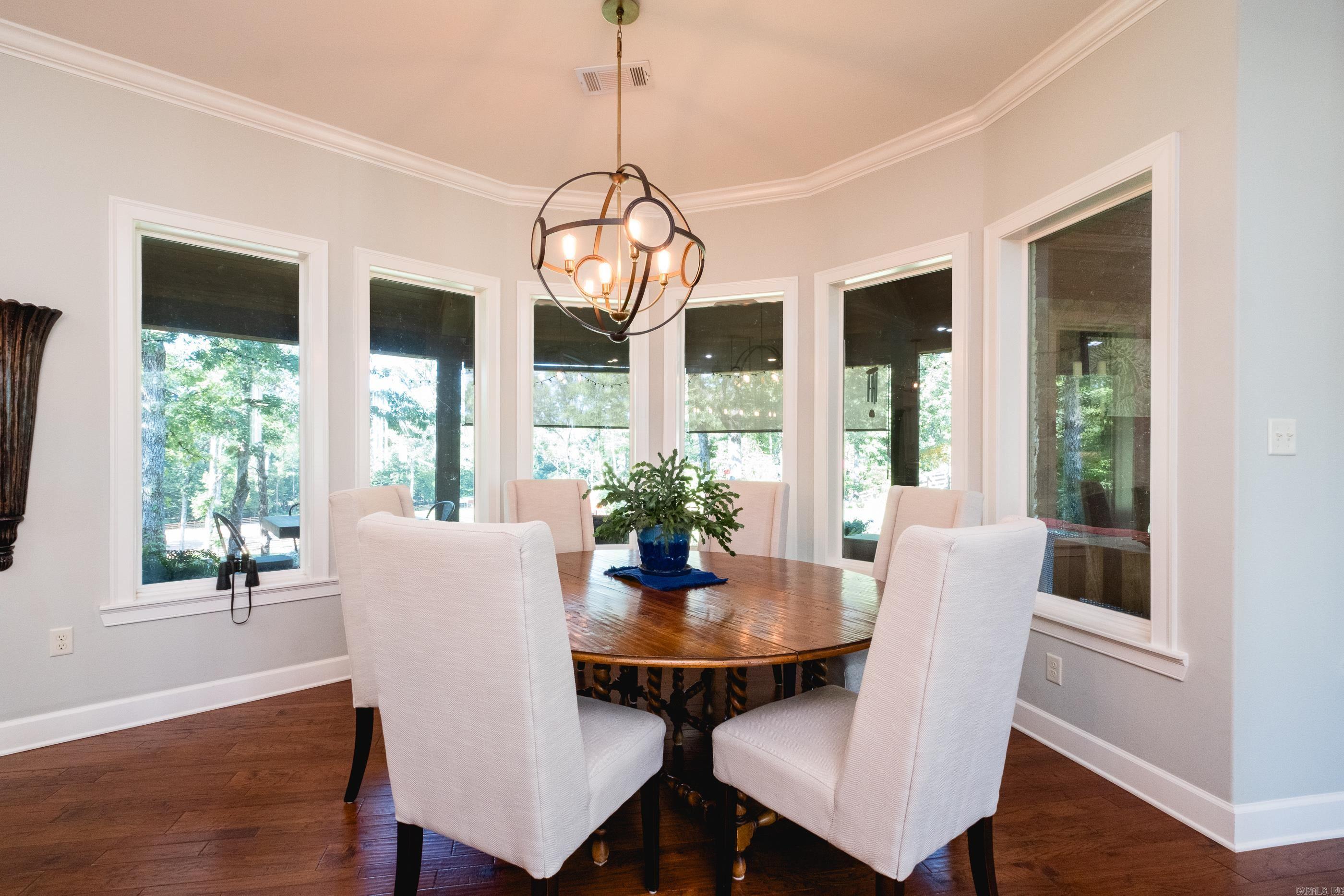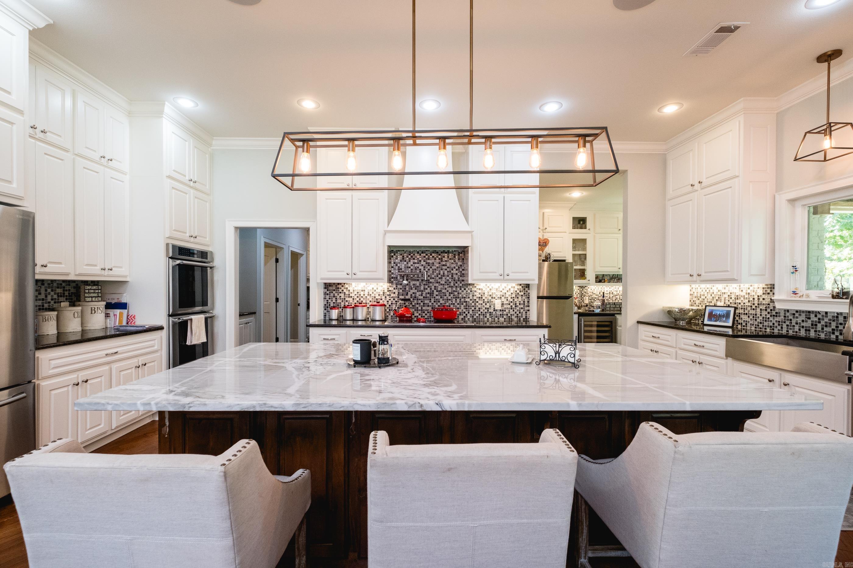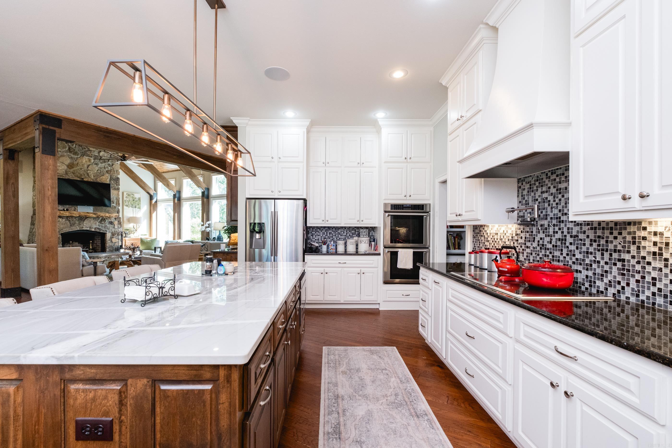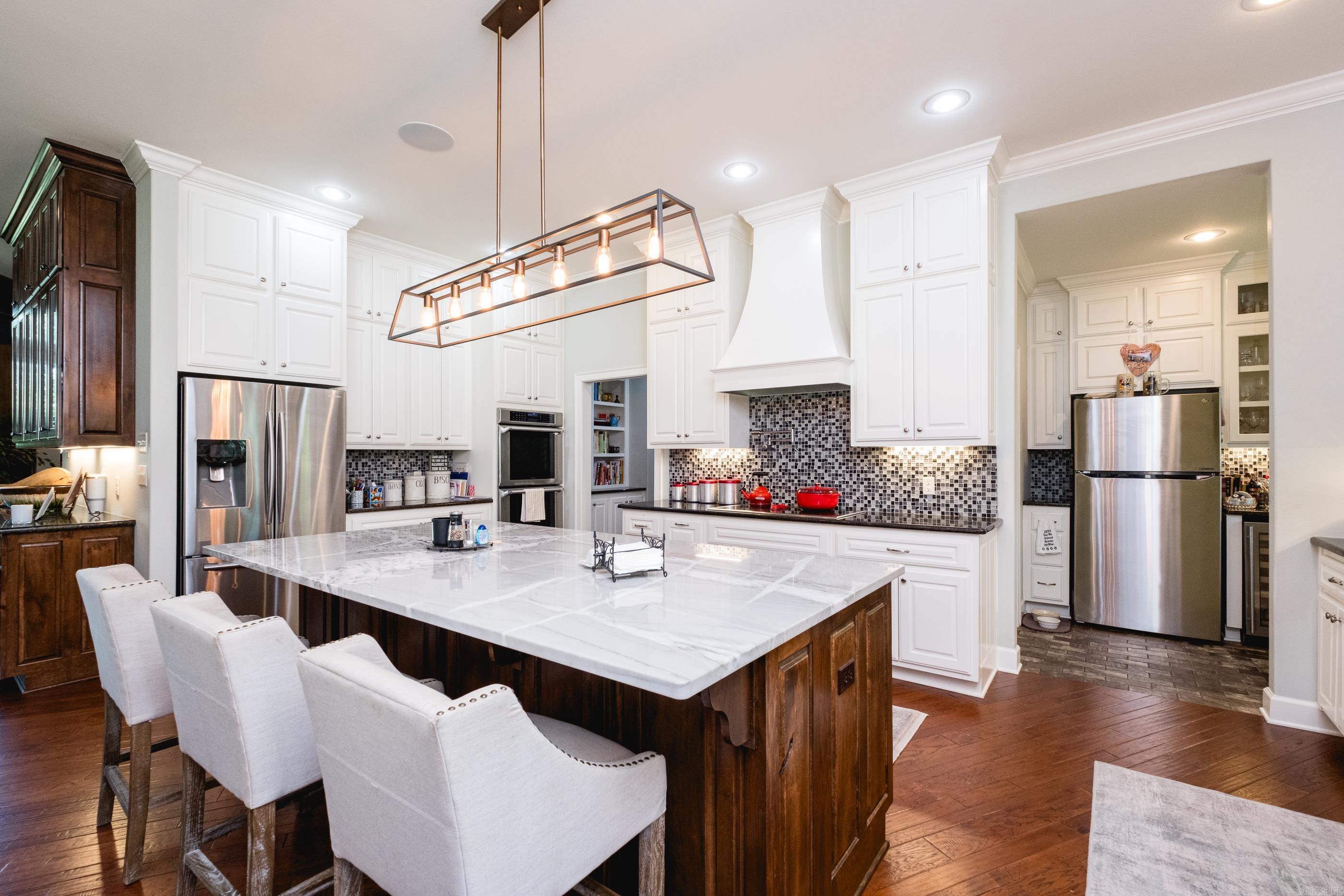 This exceptional equestrian property in Roland (bordering Ferndale) boasts an array of custom-built amenities designed for comfort, utility, and luxury. Key highlights include a 36'x48' custom equestrian barn with four 12'x12' stalls, individual run-outs, indoor wash bay, and cedar-lined tack room with mini split HVAC--all complemented by a fenced 4+ acre pasture with riding arena, paddocks, and loafing sheds. Additional improvements include a 30'x40' foam-insulated shop with mini-split HVAC, a detached 2-car garage with a 662+- sq ft upstairs efficiency apartment (both have own mini-split HVAC), and multiple equipment/trailer sheds and storage The main house is designed with rustic elegance and features 4 bdrms, 3 baths, gourmet kitchen, wet bar, a safe room/wine cellar, climate-controlled dog room with a bathing station, and scenic views of a stocked pond w/ fountain and the equestrian facility. Outdoor spaces are enhanced with irrigation, solar lighting, and extensive fencing using 4-rail corral board. Numerous items convey, including an automatic generator, hot tub, three refrigerators, AV equipment, and more, adding turnkey value to this remarkable property!