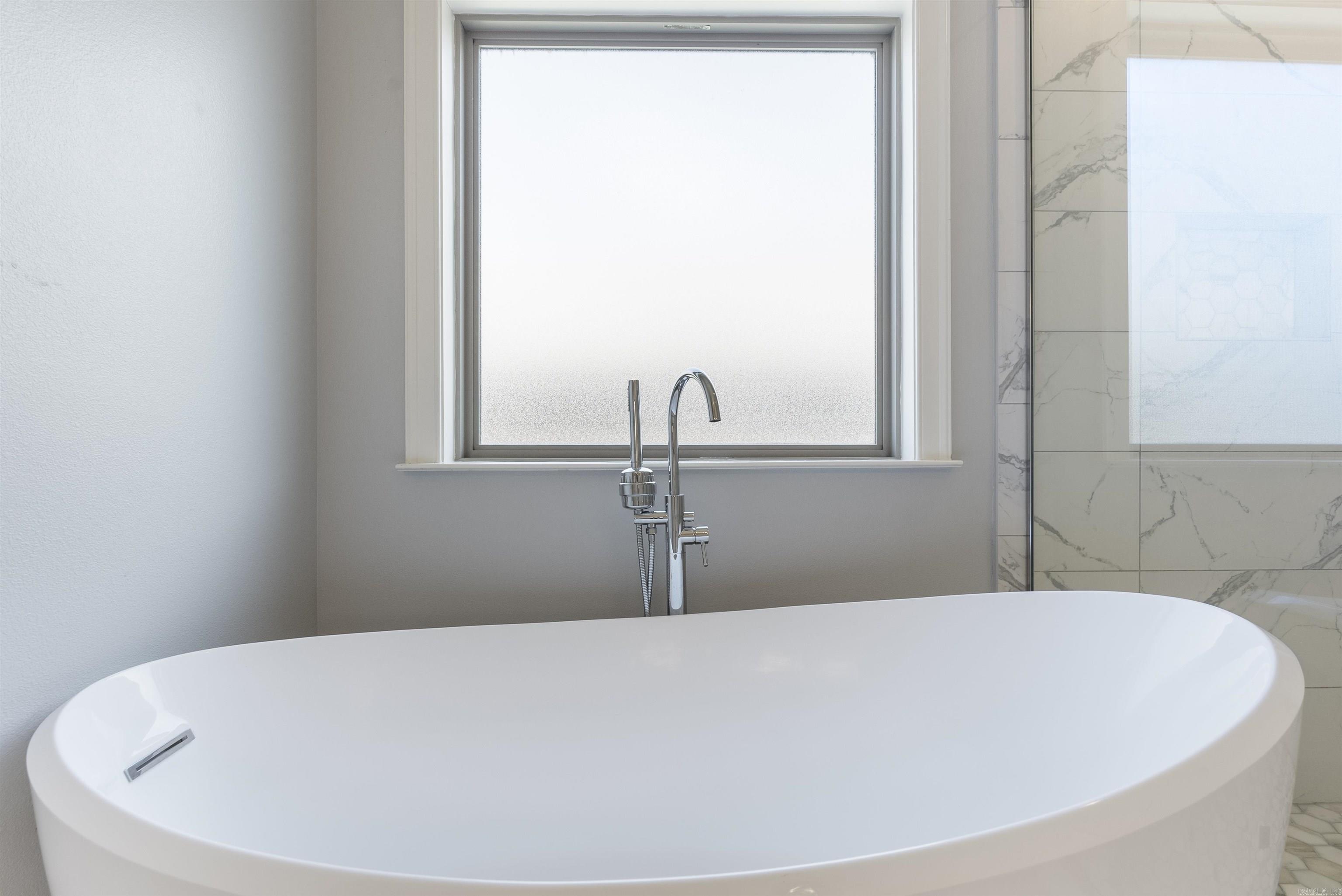 The primary bedroom is located on the main level and offers a luxurious retreat with its spa-like bathroom featuring a soaking tub, frameless glass shower, private water closet, and generous closet space. Upstairs, you’ll find three additional bedrooms, one of which could easily serve as a game room, along with a large hall bathroom.